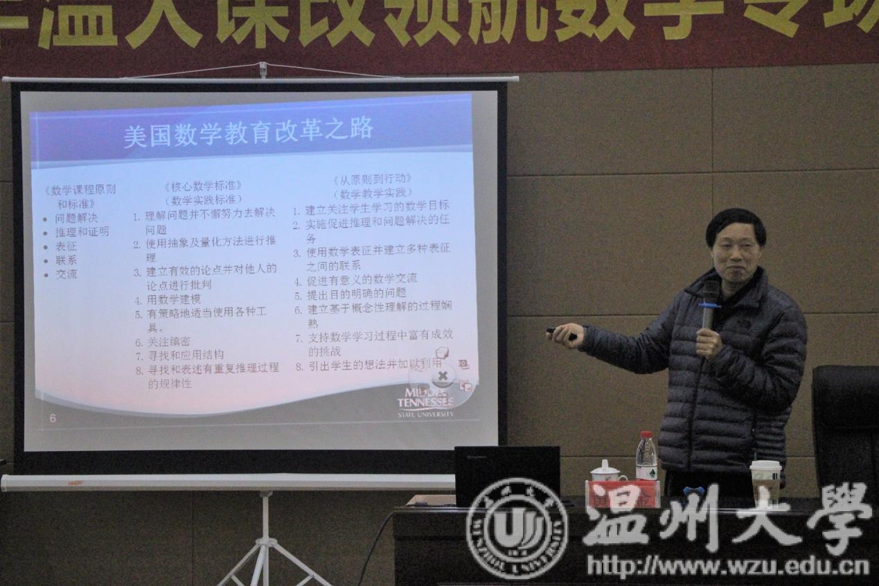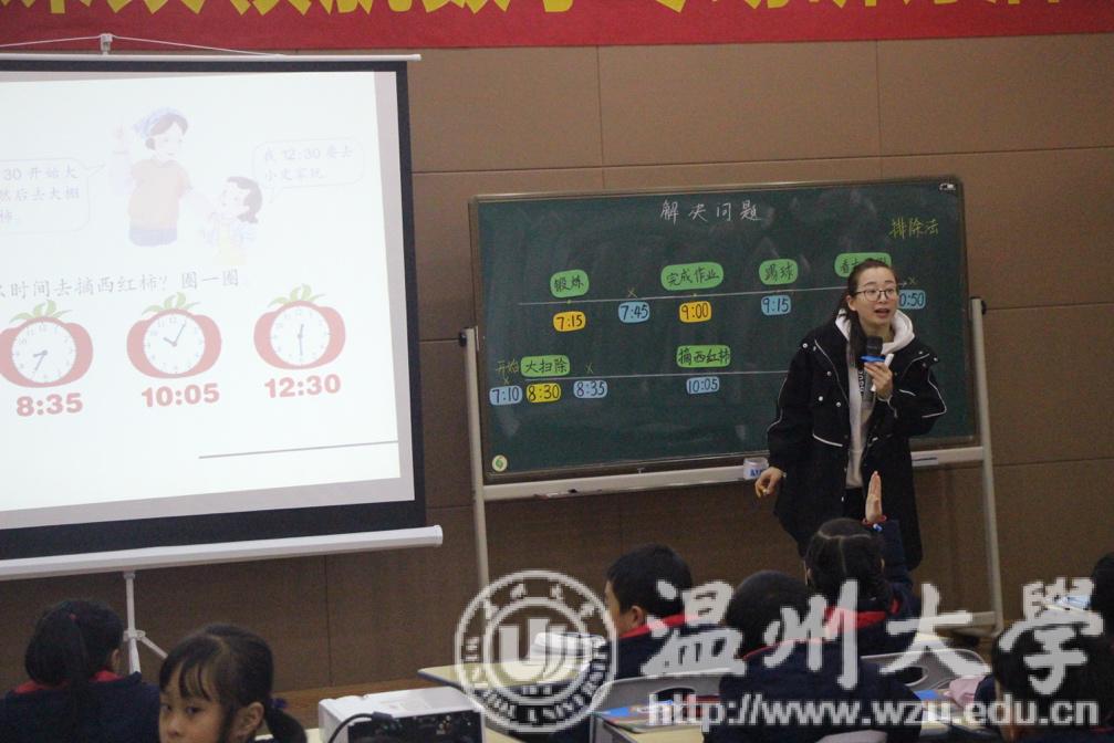 12月12日,财神捕鱼 教师财神捕鱼 小教系师范生数学学科课改领航活动如约而至。本次活动温大小教系主任章勤琼博士特地邀请了美国中田纳西州立大学黄金荣教授莅临指导。会场高朋满座,既有财神捕鱼 小学数学特级教师工作站的学员,也有温大的“准老师”们。本次活动的主要从三堂精彩的课例中分析学生学习路径。