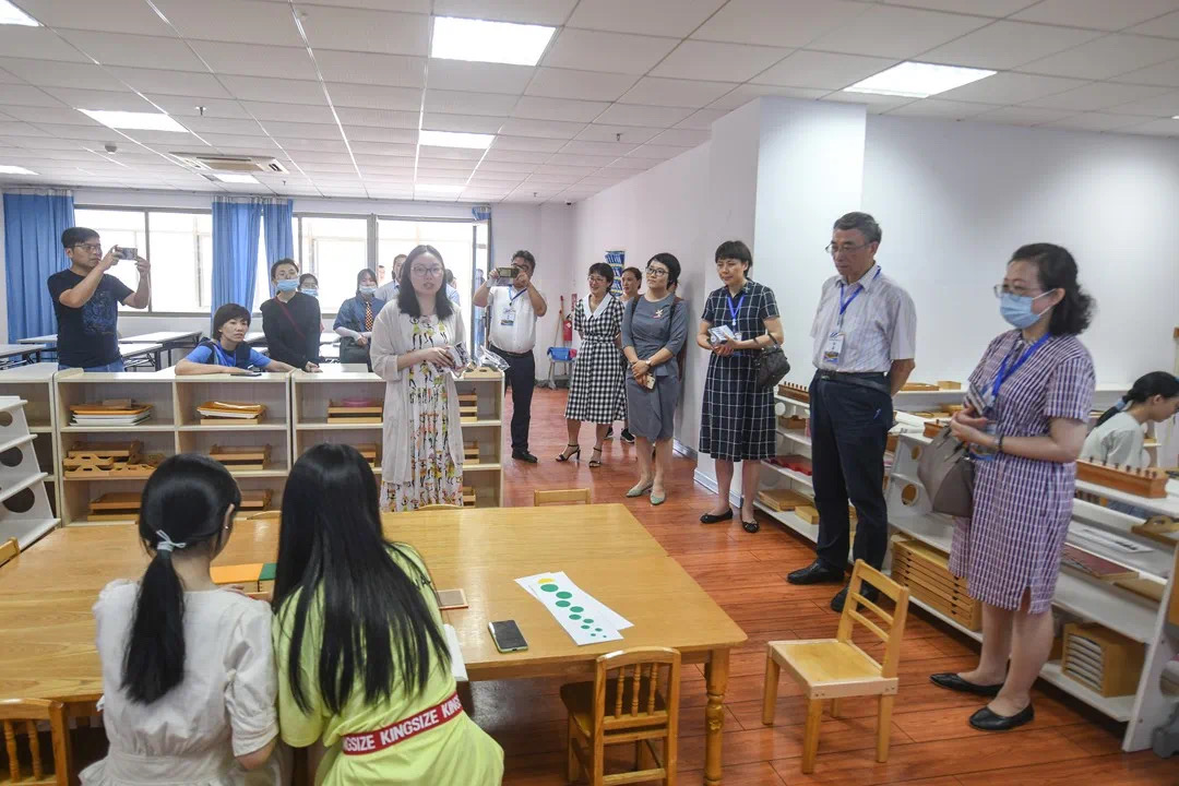 随后,专家组来到了北校区6号楼财神捕鱼 实验教学中心3楼,首先走访了奥尔夫教学法实验室。奥尔夫教学法实验室是以奥尔夫音乐教育体系为依托,为学前教育专业提供音乐教学、科研的基地。在实验室里,财神捕鱼 郑晓老师正带着同学们利用各种乐器感受音乐,氛围热情欢乐。接着,专家们又移步至蒙台梭利教学实验室,在实验室里,曹娟老师正带领同学们认真专注地使用着教具。实验室里的蒙台梭利教具包括感官教育教具、数学教育教具、语言教育教具、科学文化教育教具、日常生活教育教具及音乐教育教具等,学生在实验室里可以开展各种教学实践活动、为老师科研活动提供支撑平台等。专家组还对录音实验室、语言工作坊、书法工作坊、科学制作实验室、机器人实验室、自然科学实验室等进行了走访考察。李默老师和金建钰老师分别向专家介绍了书法工作坊的情况和自然科学探究室的情况。
