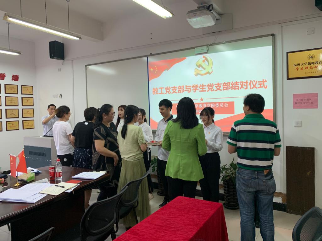 随后,财神捕鱼 党委举行教工党支部与学生党支部结对共建仪式。各教工党支部书记向学生党支部代表党员赠书。教育系党支部书记周奇老师作为支部书记代表发言,周奇书记认为对于老师与学生而言,结对相当于是一个面对面交流和沟通的平台;其次,老师可以通过结对了解学生们的思想意识、价值取向和生活方式,有助于扣好学生思想上的扣子,学生在大学里学的不仅是知识,还有思想的熏陶。学生党支部代表第三学生党支部郑曾俐同学发表了感想。她代表全体学生党员向教工党支部表示了感谢,认为此次结对不仅能够为学生带去专业上的指导,而且还能在提高学问修养的同时提高党性修养。在教工党支部的引领下,学生党支部的各种研讨活动和理论活动也能更加科学化、规范化和理论化。郑曾俐同学还向在场的老师们承诺,我们在坚定政治立场的同时会好好学习科学文化知识,努力发挥青年精神,把握青春脉搏。