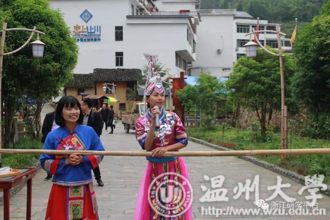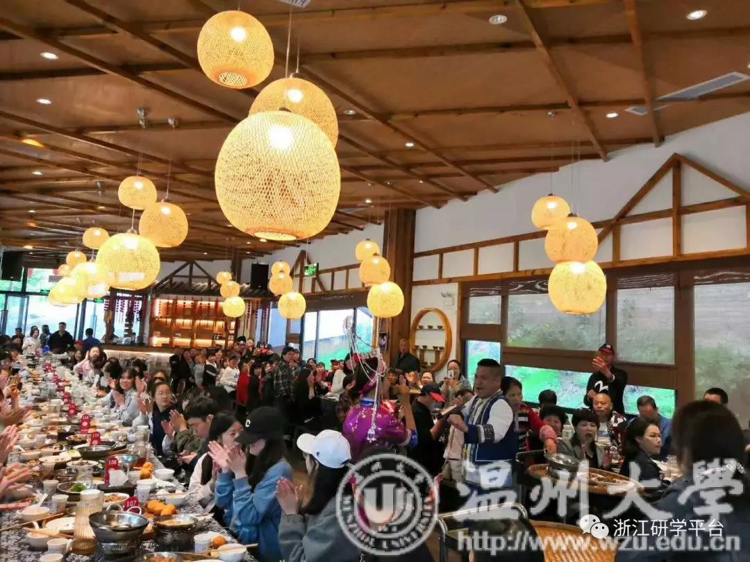 27日上午,师生们对文成县让川村进行了参观。让川村依山而建,错落有致,背靠千年古樟,田园风情浓郁。一行人首先参观了村内现有乾隆年间的叶氏祠堂、节孝牌坊以及四合院、老门台等古迹。接着,师生共同体验了独具特色的畲族长桌宴,深刻感受热情好客的畲家文化。