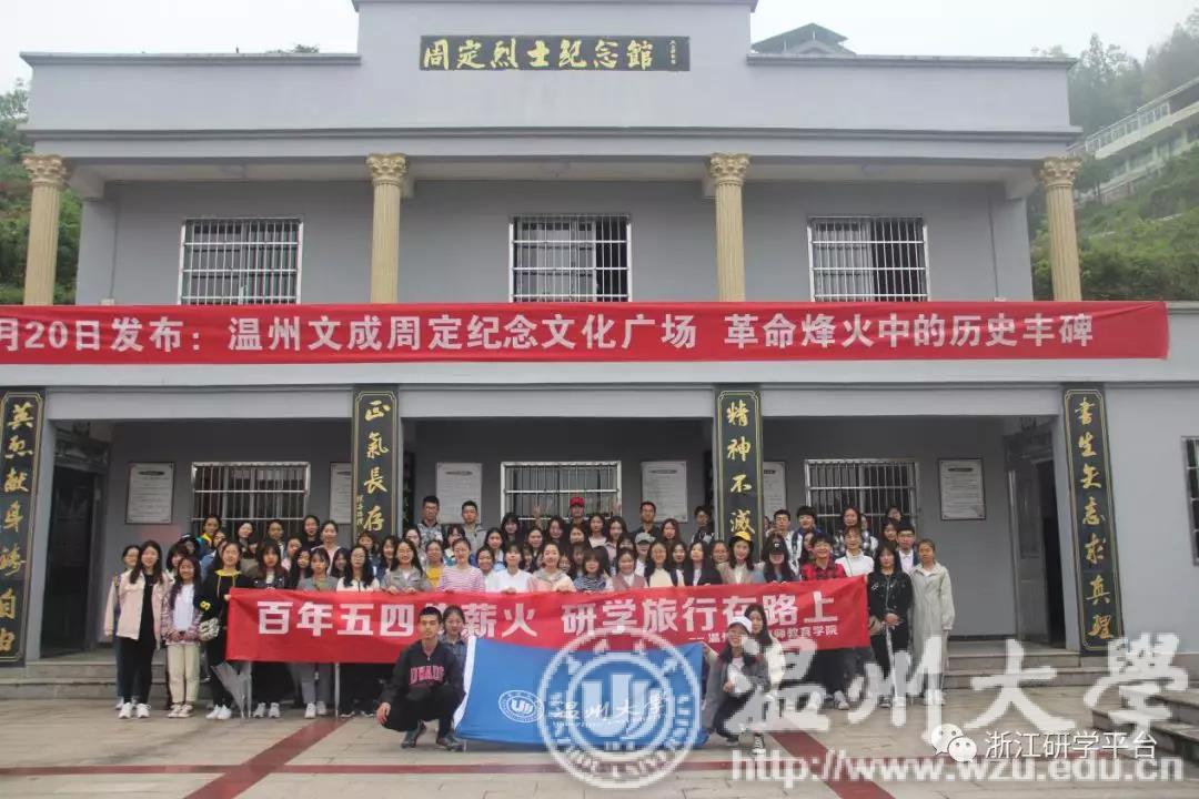 2019年4月27日,为纪念五四运动一百周年,深入学习五四精神。浙江省中小学生研学旅行研究与指导中心携手财神捕鱼 教师财神捕鱼 、财神捕鱼 溯初学区走进文成县,开展以“百年五四传薪火,研学旅行在路上”为主题的研学旅行活动。此次研学活动由财神捕鱼 教师财神捕鱼 学生科吴超智老师和何奔奔老师带队,研究生、本科生学生代表参加。