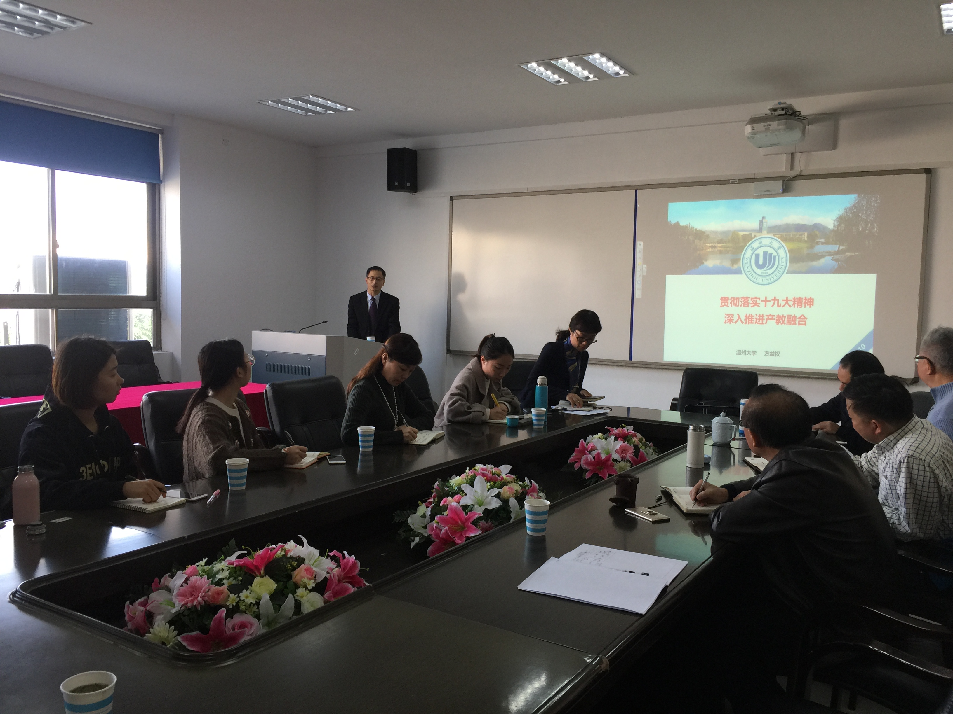 工作;要实现“组织再造”,全力推进产教融合,全面提升应用型人才培养质量;要实现“人员再造”,打造师生命运共同体;还要实现 “专业、创业、产业”三业融合系统的“系统再造”。最后,他提出了自己的希望,“只要努力,一切都有可能”,希望教师财神捕鱼