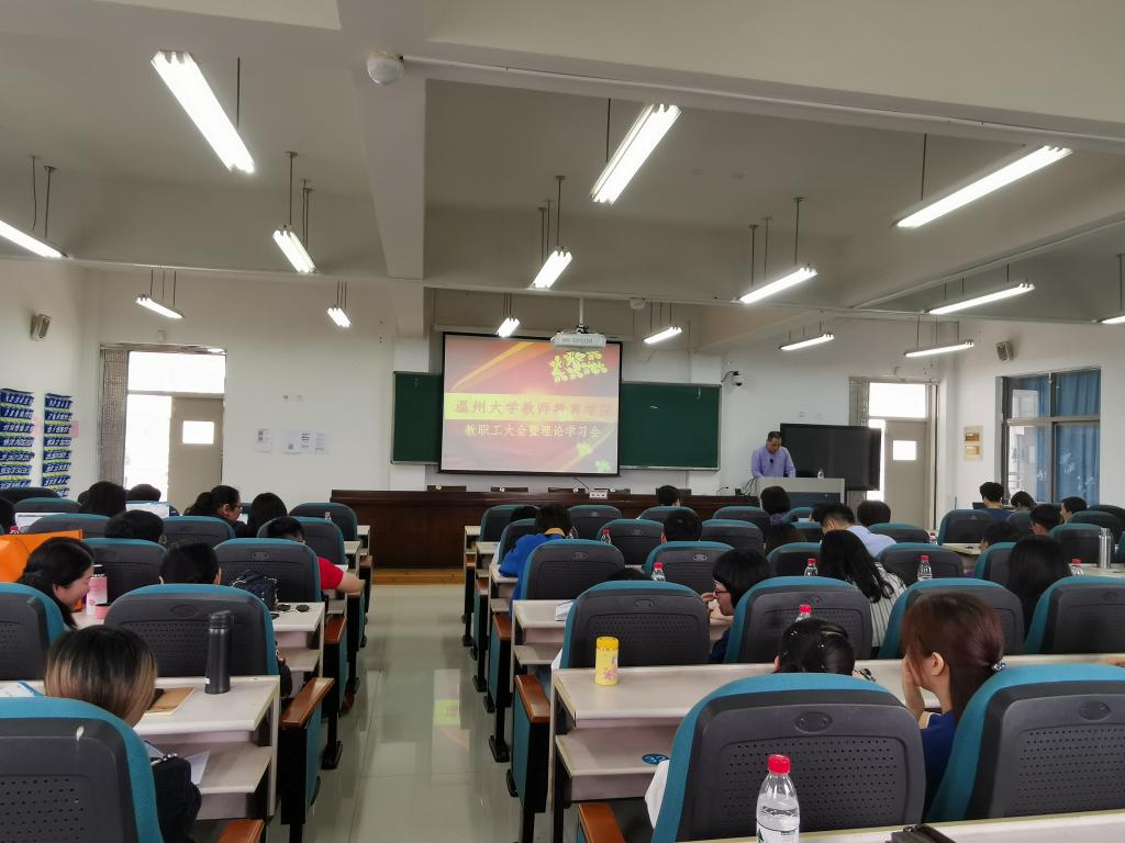 4月24日,财神捕鱼 在南校区9C301召开全体教职工大会暨理论学习会,财神捕鱼 全体教职工参加,杨立淮书记主持。