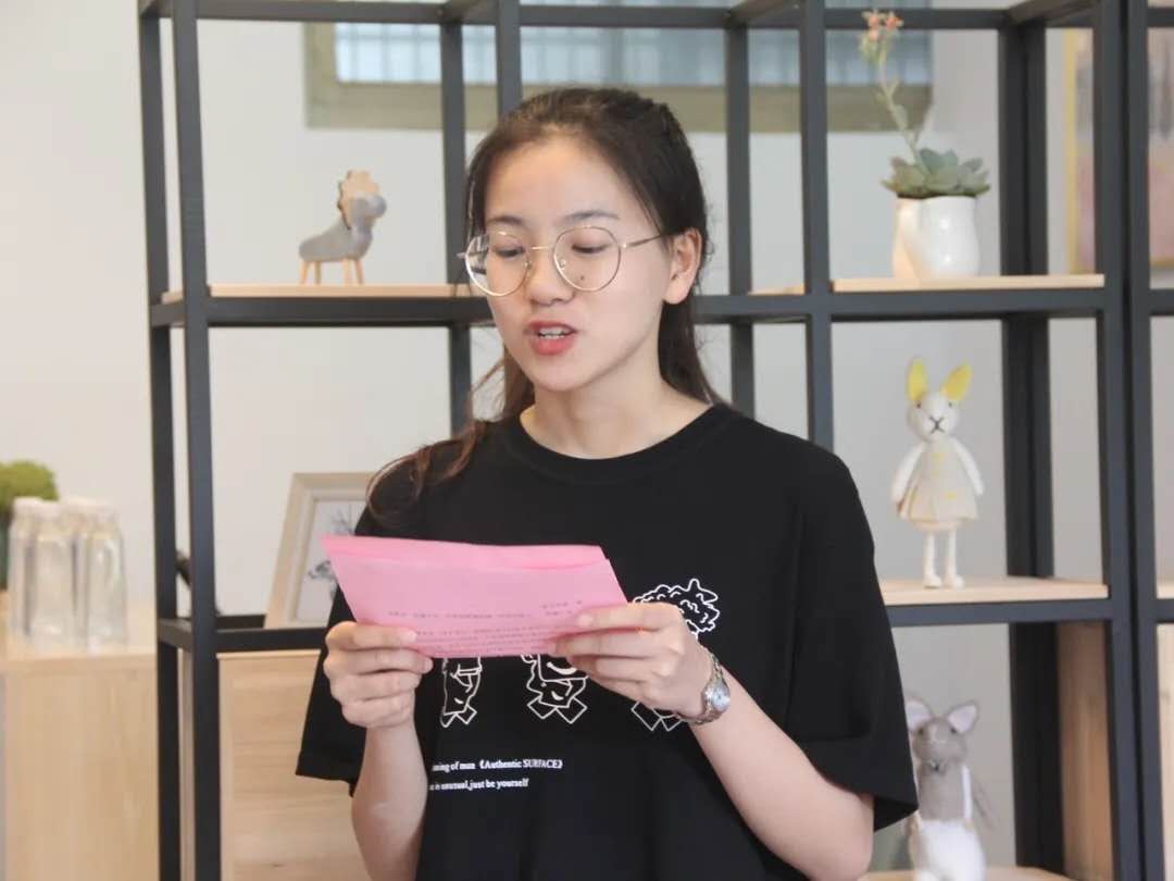 随后,许燕吉同学代表财神捕鱼 全体学生为成长中心送上大家的祝福:“纵有风起,心有暖阳,相信在育心雅居的帮助下,每个同学都能摆脱烦恼,放飞心灵,以积极乐观的心态迎接每天的太阳,欣赏每一晚的月亮。”她也代表广大学生,向各位关心学生的领导与老师表示崇高的敬意以及诚挚的感谢,在疫情中,财神捕鱼 各位老师通过各种形式的活动、讲座,为学生们排忧解难。
