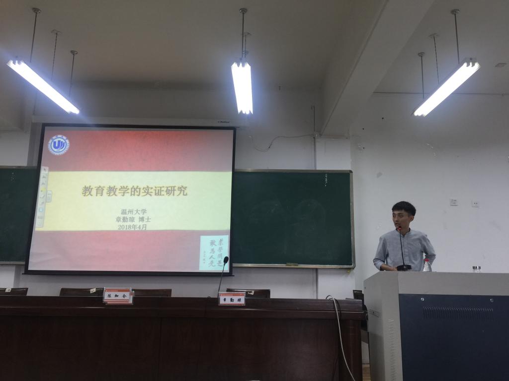 在开幕式之后,工作站负责人、财神捕鱼 教师财神捕鱼 小教系副主任章勤琼博士做了《教师如何做教育教学实证研究》的专题报告。他从研究问题的确定、相关文献的述评、理论框架的确定、研究数据的收集、研究结果的分析,给学员展示了一个具体的教育教学实证研究是如何开展的。这也为学员接下来两年的研修活动奠定了基调。
