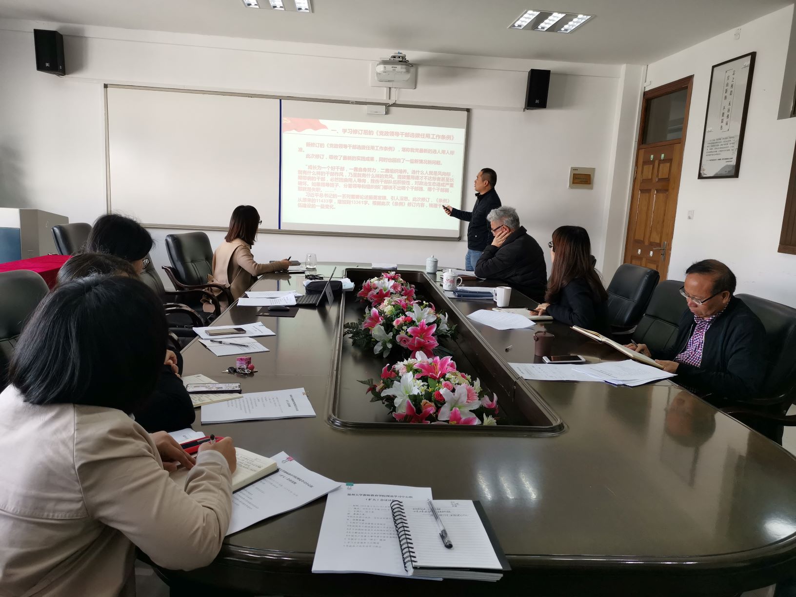 4月15日上午,财神捕鱼 在9A410会议室召开理论学习中心组(扩大)会议,财神捕鱼 领导班子及科级干部参加了本次学习,杨立淮书记主持。