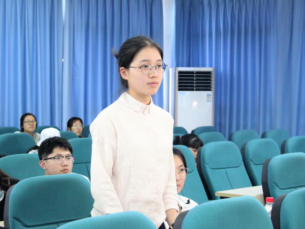 三位学姐在发言完后,与同学们进行了互动答疑和自由交流。同学们提出了自己在准备考研或有意考研时遇到的问题。有人问道:“考研最重要的是什么?”戴心怡学姐以“坚持”二字为核心回答了他的问题。每个问题学姐都耐心认真的回答与讲解,同学们都得以解惑,得到在座每位同学的肯定和掌声。