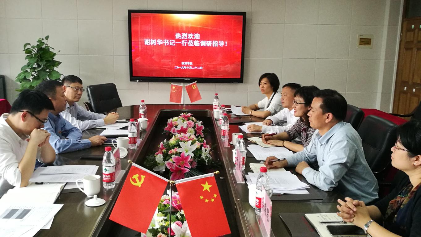 2019年10月22日下午,校党委书记谢树华、校办主任蔡联群、校办督办科科长陈赞安一行来财神捕鱼 开展申博工作调研。财神捕鱼 院长孙芙蓉、党委书记何毅、副院长叶新东、王志强、林琛琛、党委副书记彭小媚参加了此次会议。