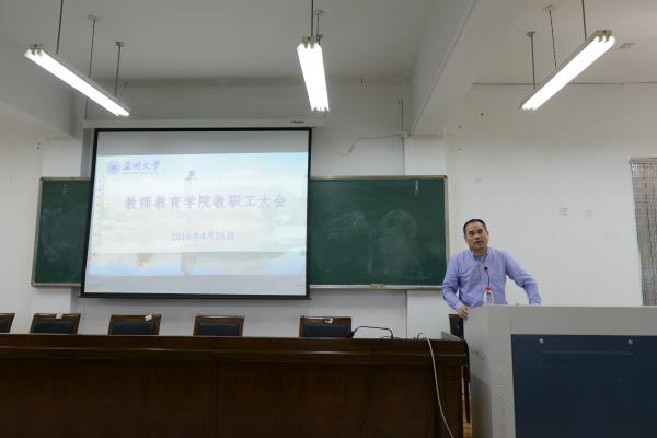 4月25日下午,财神捕鱼 在南校区9C301召开全体教职工大会,财神捕鱼 全体教职工及部分研究生党员参加,杨立淮书记主持。本次会议议程主要包括新教师入职仪式、财神捕鱼 2018年全面从严治党工作会议暨“党支部建设年”工作部署会以及师德师风专题学习。
