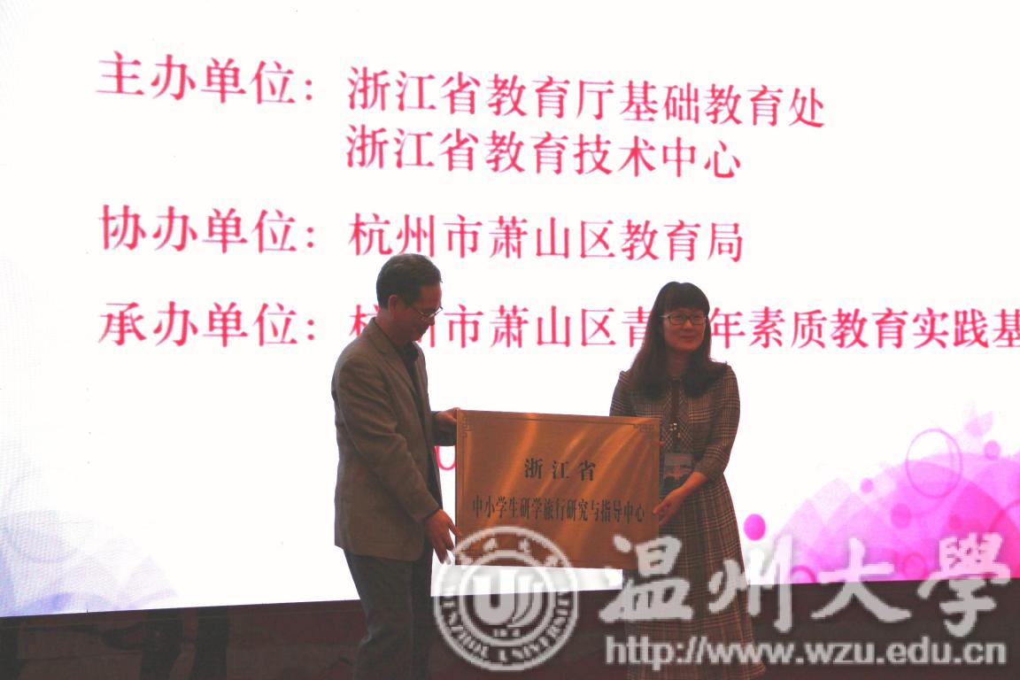 2019年4月9日,浙江省中小学生研学旅行工作培训会在杭州举行。在会议开幕式,浙江省教育厅为财神捕鱼 “浙江省中小学生研学旅行研究与指导中心”授牌,财神捕鱼 教师财神捕鱼 院长孙芙蓉作为中心主任代表财神捕鱼 上台接牌。