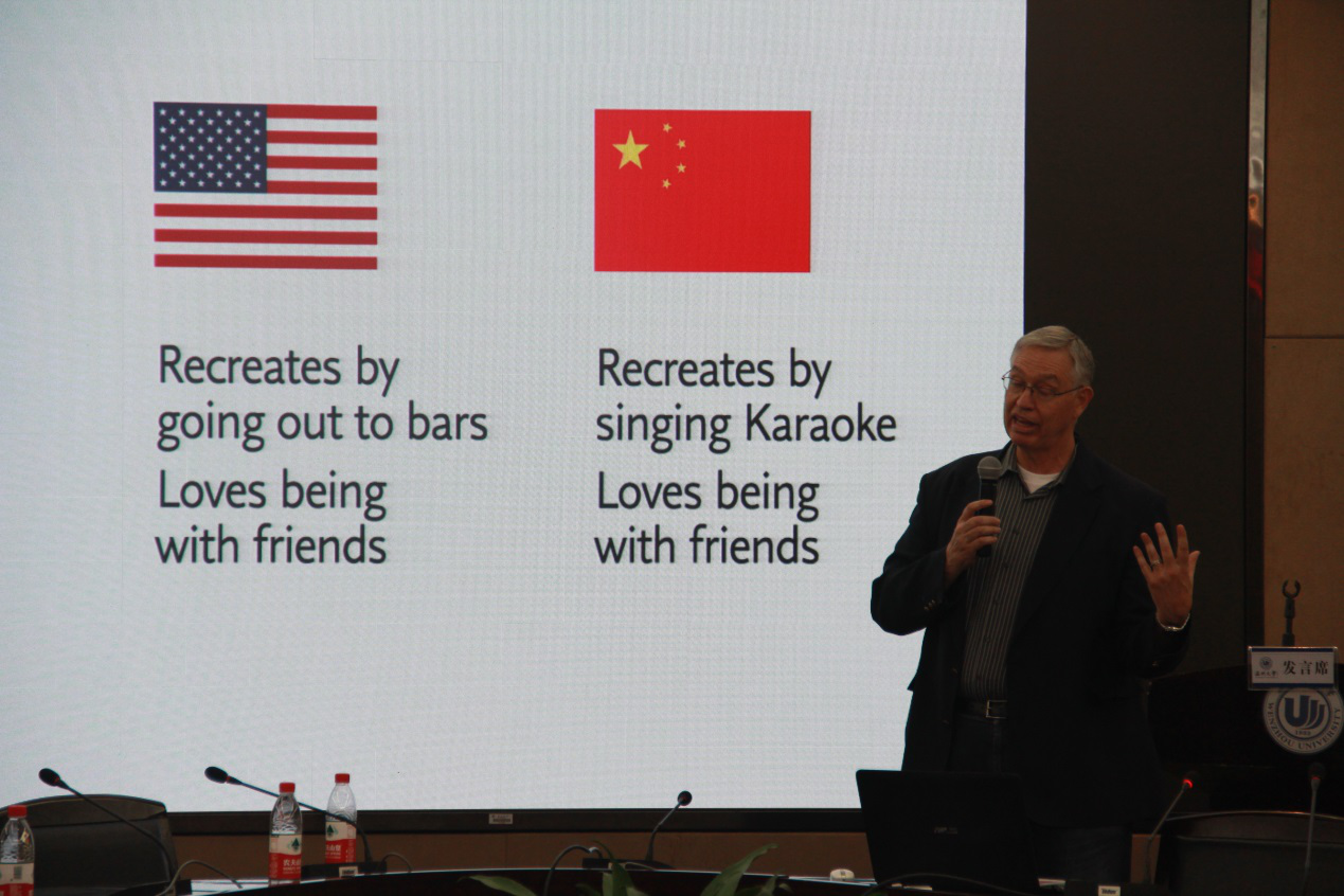 教育现代化水平和国际交流合作领域,为培养和造就具有国际视野、具有先进理念的国际化师范人才而努力。 学习科学领域主要关注“人为什么要学习”、“人是如何学习的”以及“人应该如何学习才更有效”等三大核心基础性问题展开研究,而且,世界各国已将学习科学确立为新教育政策的关键基础,其成果深刻影响了国际教育变革的步伐和走向。从学习科学出发,研究教与学的关系,已成为世界诸多发达国家探索教育创新、革新课堂教学的新路径选择。本次论坛以“学习科学与教学”为主题,旨在通过学习科学的研究成果推动教学发展,使教育工作者更好的理解学与教的内在逻辑关系。来自肯恩大学Randy L. Clark教授以幽默风趣的开场白揭开了本次论坛的序曲,他主要从视觉可视化图形教学出发,在中国与美国学生在设计图形过程产生的思维差异作为教学研究的切入点,重点改善与优化中国学生可视化图形设计的思维,并认为图形化设计过程就是为了简洁、明了地传递信息,也是为了更加深入地加工信息,是对语言、文字等思维活动的解释说明。 Randy L. Clark教授学术演讲 来自韩国全南大学的Shin. BoMi教授,则主要从数学教育为介绍的出发点,重点探讨了韩国在数学教学、教师知识以及数学电子课本开发等方向的问题。同时,也谈到了全南大学文化特点、中韩两国教育文化的发展,尤其是全南大学与中财神捕鱼