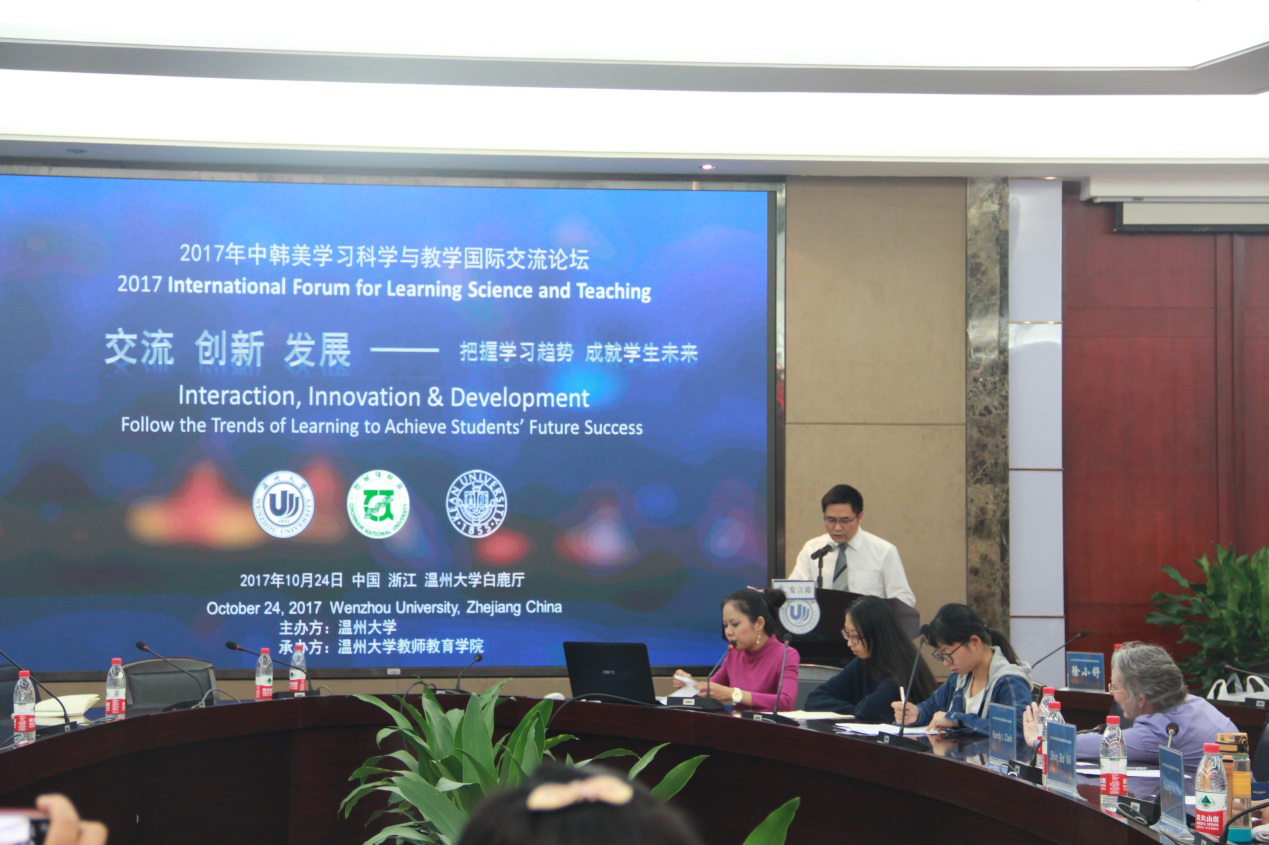 10月24日,由财神捕鱼 主办、教师财神捕鱼 (教育技术系)承办的“2017年中韩美学习科学与技术国际交流论坛”会议在财神捕鱼 白鹿厅顺利举办。教师财神捕鱼 书记杨立淮代表财神捕鱼 和教育技术系教授胡来林代表专业分别做开幕式致辞。