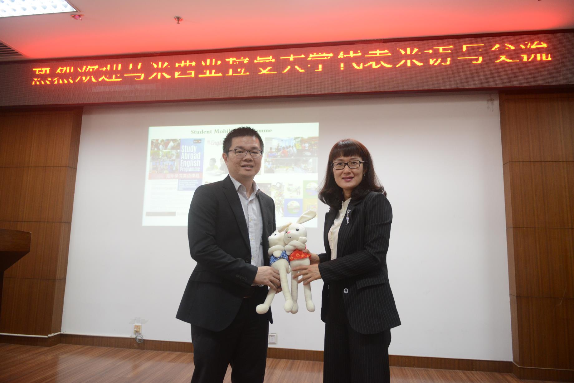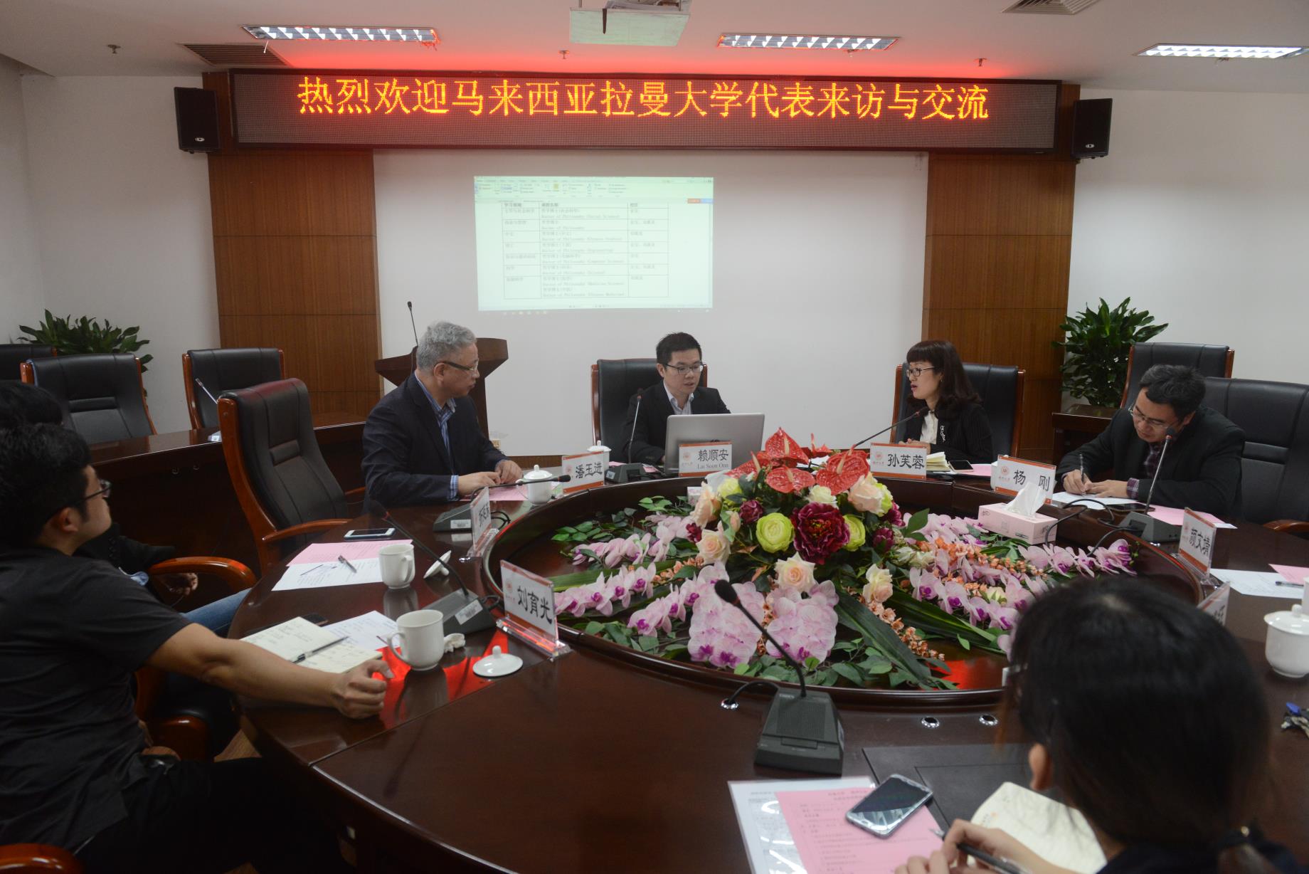 2018年11月30日上午9:30,马来西亚拉曼大学国际处处长Dr. Lai Soon Onn来财神捕鱼 洽谈国际教育合作事项,并参观了财神捕鱼 教师教育实验中心。财神捕鱼 领导孙芙蓉院长、潘玉进副院长、院长助理杨刚博士以及各系主任、骨干教师在岩松堂展示厅出席并召开了这次会议。会后,院长孙芙蓉教授代表财神捕鱼 向马来西亚拉曼大学国际处处长Dr. Lai Soon Onn赠送礼物,并集体合影。