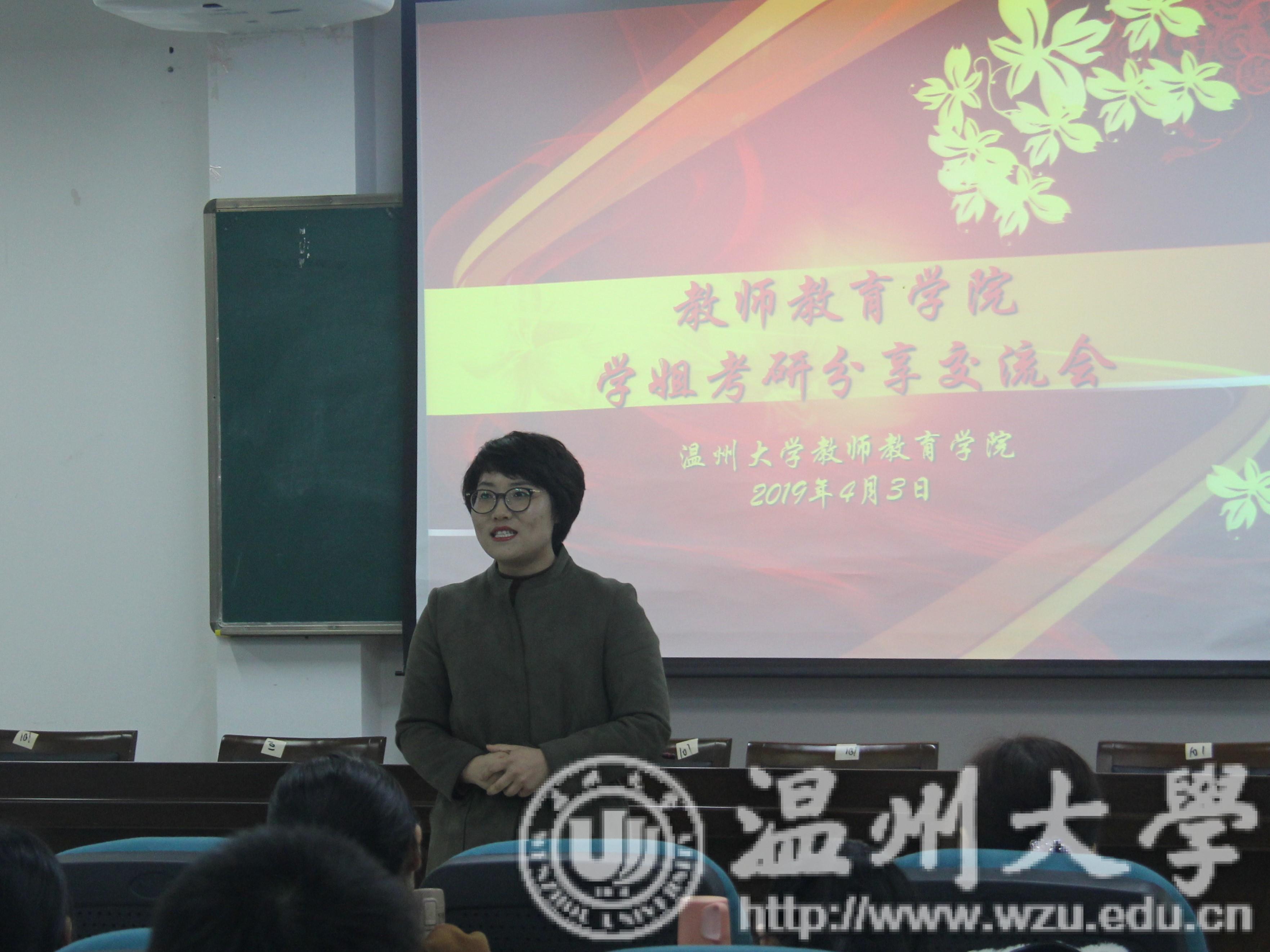 为了能使考研的同学更好地掌握考研信息,及时制定复习计划,坚定考研信心,财神捕鱼 教师财神捕鱼 于4月3日在南9C-301开展了学姐考研分享交流会。成功考取华东师范大学学前系硕士研究生的15学前本郭千金和顺利申请伦敦大学财神捕鱼 硕士研究生的17专升本苏雨舟出席本次交流会,分别给同学们带来国内考研和申请国外研究生的经验分享。此外,到场的还有教师财神捕鱼 学前教育系系主任李娟教授,学前教育系副主任杨婧副教授,交流会由许茗珊同学主持。
