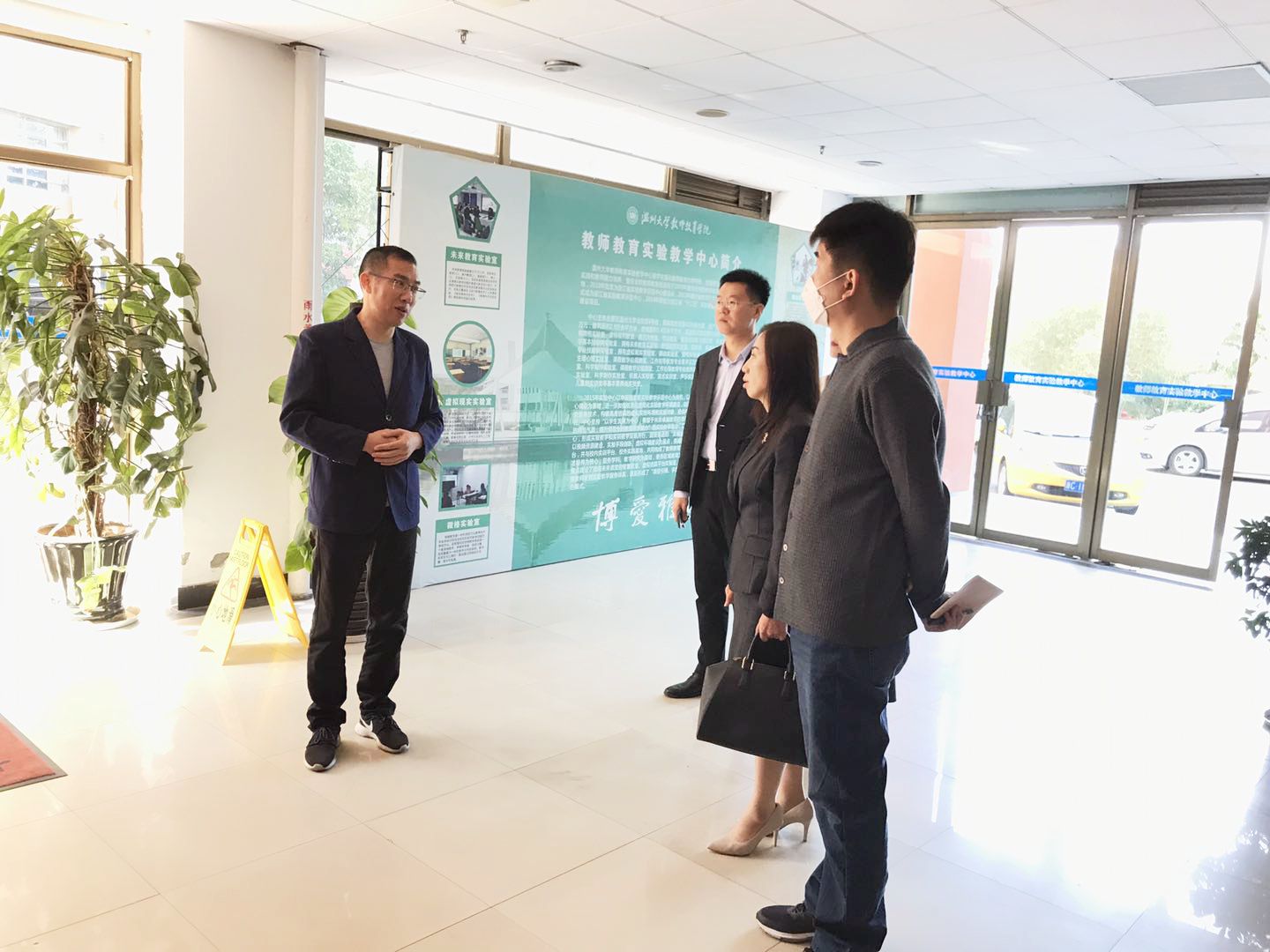 11月9日,延边大学师范财神捕鱼 小学教育专业崔梅花主任一行4人来我实验中心参观交流,实验中心主任李小志、小教系金建钰老师热情接待来客。
