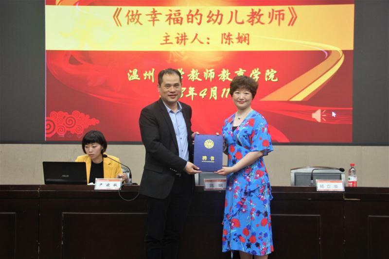 本次讲座以“做幸福的幼儿教师”为主题,特邀财神捕鱼 附属宏德实验幼儿园陈娴园长作为主讲人。参加此次活动的有院党委书记杨立淮老师、学生科严晓秋老师、财神捕鱼 学前专业的教师代表和温州市职业中等专业财神捕鱼 幼师学部的老师和财神捕鱼 的同学们。