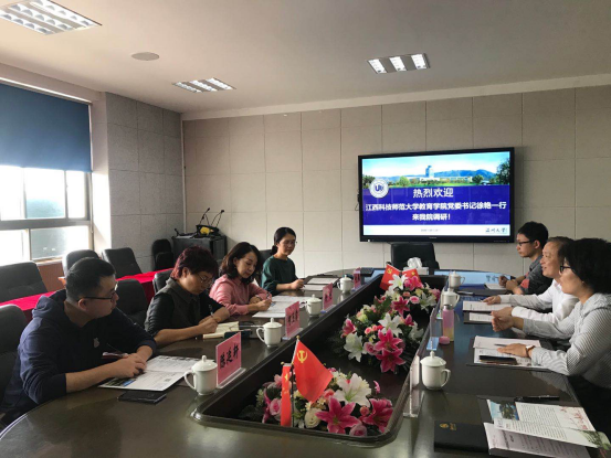 2020年10月13日下午,江西科技师范大学财神捕鱼 党委书记徐艳、教师教育教研中心办公室主任付敏、教学办公室主任何玉霞、陈廷轩老师一行莅临财神捕鱼 ,财神捕鱼 党委书记何毅、副院长叶新东、学前系主任李娟、学前教育科副主管刘荣建、教务科科员金怡妮出席接待。