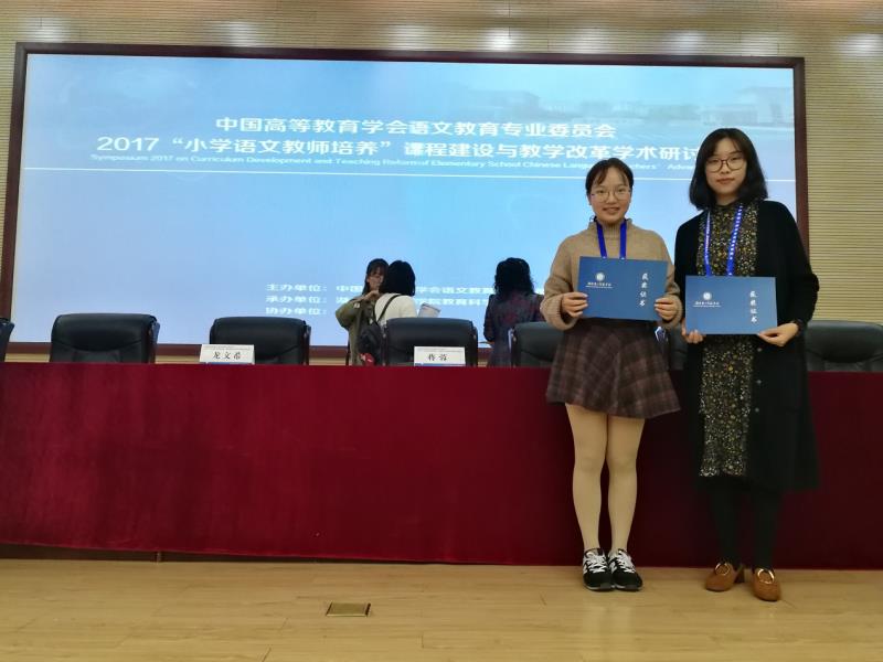 2017年10月12日—13日,中国高等教育学会语文教育专业委员会“小学语文教师培养”课程建设与教学改革学术研讨会在湖北第二师范财神捕鱼 隆重召开。同时举办的第六届全国高师高职小学教育专业师范生语文教学展示比赛上,财神捕鱼 教师财神捕鱼 小教系的舒思思和王诗雨分别斩获特等奖和一等奖。