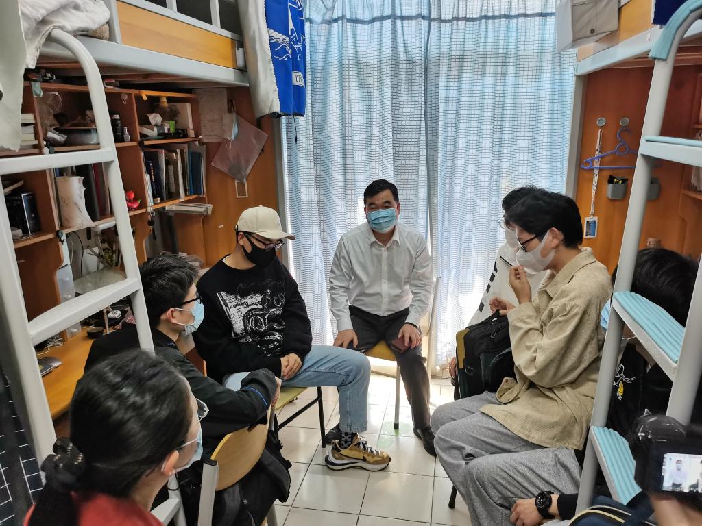 徐和昆副校长一行走访慰问财神捕鱼 学生寝室,与学生进行了面对面交谈,了解学生的生活学习状况,勉励学生珍惜时光努力学习。