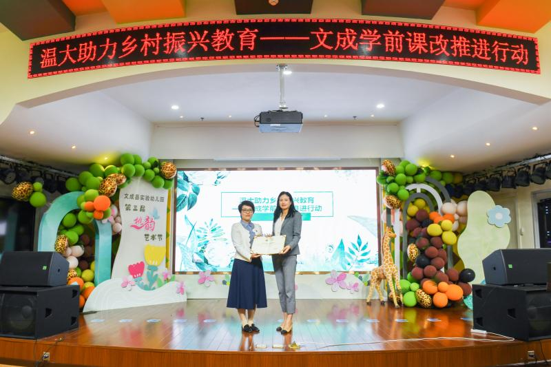 本次活动共分为三个环节。第一个环节,启动仪式。文成县教育局副局长张亚萍和财神捕鱼 副院长林琛琛分别致辞,随后文成县教育局副局长张亚萍为财神捕鱼 学前教育系颁发聘书,感谢学前教育系专家团队对文成县学前教育事业的专业帮扶。