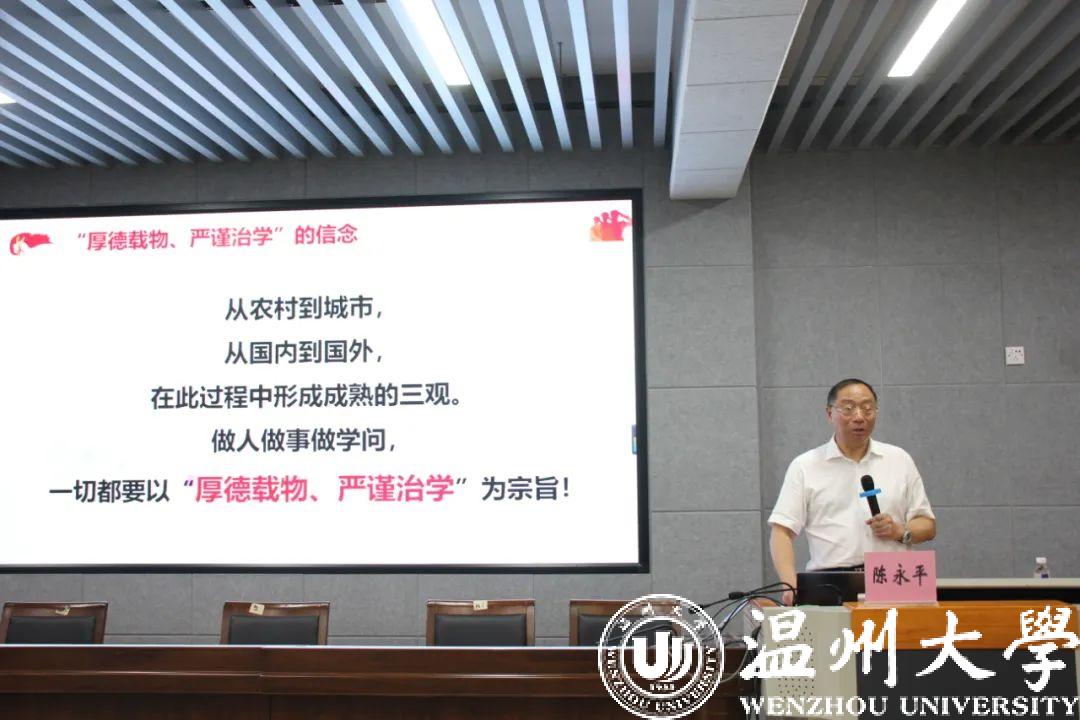 2020年全国劳动模范和先进工作者表彰大会在北京隆重召开,习近平总书记在会上作了重要讲话。陈永平教授先后从习近平总书记以及省、市委书记的讲话出发,深入解读了习近平总书记的重要讲话和省、市座谈会精神。针对“如何在成长成才过程中培养三观”这一问题,陈教授用自己的亲身经历阐述了坚持就是胜利。从农村到城市,从国内到国外,不论身在何处,做人做事做学问,一切都要以“厚德载物、严谨治学”为宗旨。