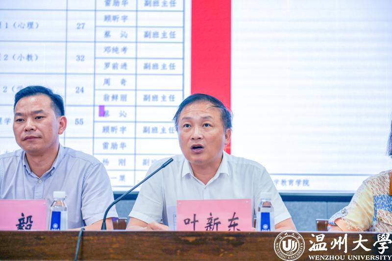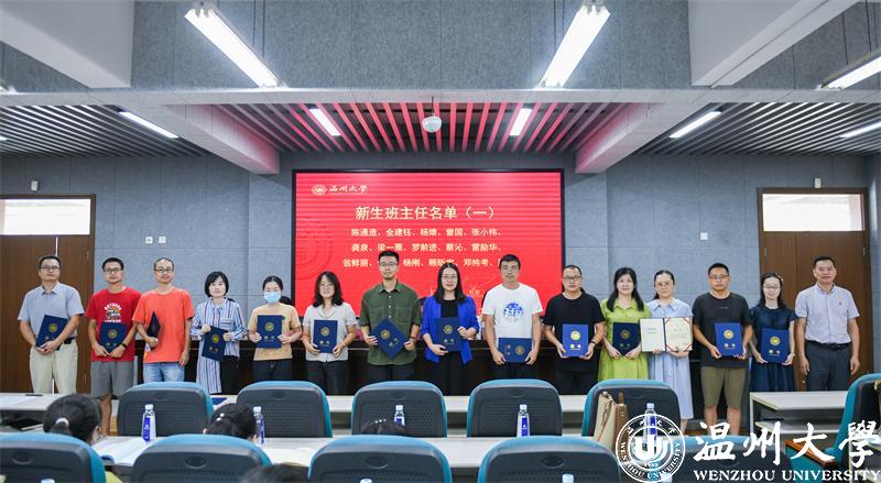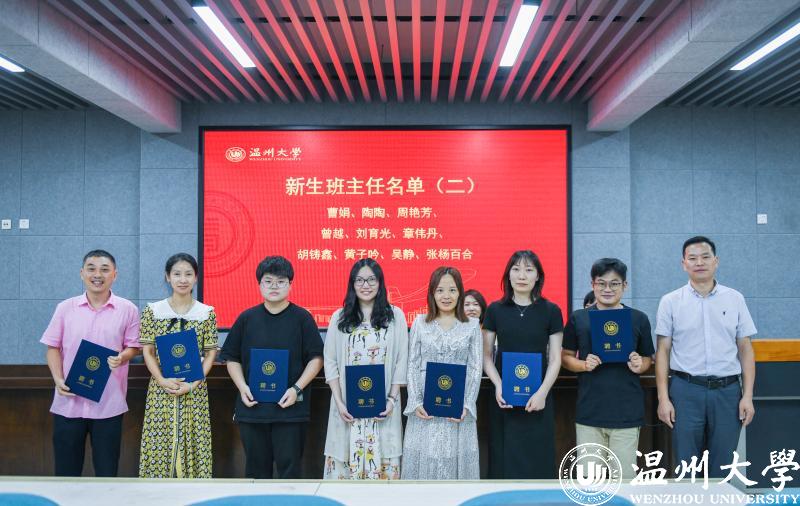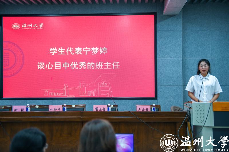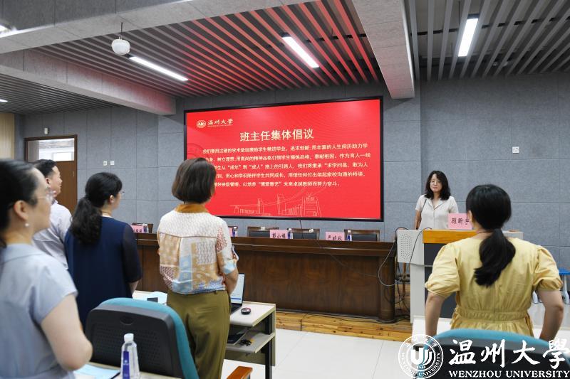 新生班主任代表顾昕宇发起班主任集体倡议。“我们要用过硬的学术造诣,激励学生精进学业,追求创新,用丰富的人生阅历助力学生定位自身,树立理想,用高尚的精神品德引领学生锤炼品格,奉献祖国。作为育人一线的担当者,学生从‘成年’到‘成人’路上的引路人,我们将秉承‘求学问是、敢为人先’的温大校训,用心和学识,陪伴学生共同成长,用信任和付出架起家校沟通的桥梁,用爱与责任做好班级管理,以培养‘博爱雅艺’未来卓越教师而努力奋斗。”铿锵有力的声音,充分表达出班主任们对教育学生、引导学生、陪伴学生的信心与决心。