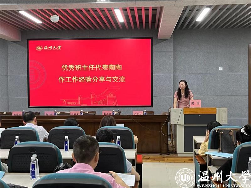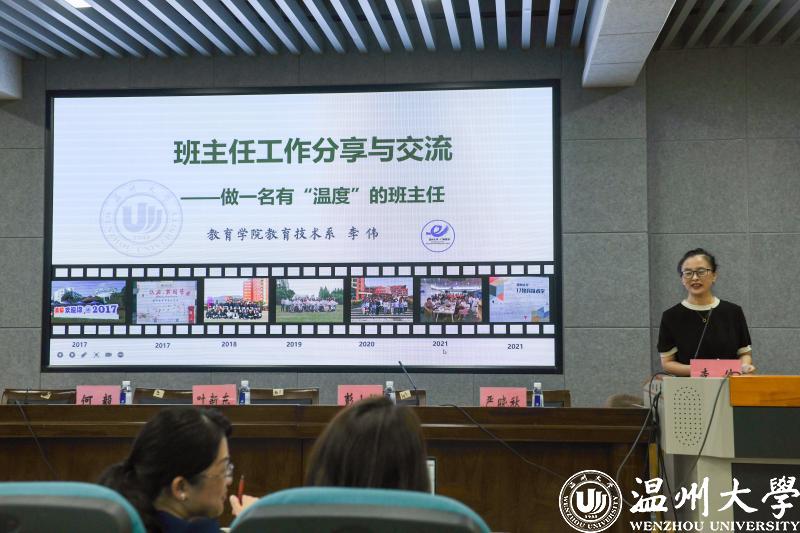 优秀班主任代表李伟和陶陶作工作经验分享与交流。李伟老师结合工作实际,从三个方面进行分享交流。一是班主任跟学生的交流。她以自己同班级学生交流的多个案例进行分享,认为与学生的交流形式可以多元化,找到与学生适合的交流形式尤为重要;二是班风学风的建设。她结合所带班级班委的选举任用、班级公众号的管理、班级品牌的打造进行分享,建议结合专业特色多开展班级竞赛、专业学习交流会等,促进班风学风建设。三是学生的学业引领和职业规划。她认为这是一个长期的工作,她举例谈到班主任平时要多跟学生强调学习成绩和专业技能能力的重要性,要时刻重视对学生的学业规划指导,如定期举行校友交流会等,同时,班主任要做好育人协同沟通,把握和引领学生的大方向。