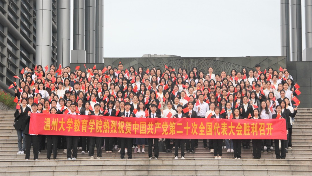党的二十大报告所呈现的历史性变革与成就,激励人心;所展现的开创性路径与图景,催人奋进。直播过程中,在场的党员干部师生心潮澎湃、心绪激昂。大会接近尾声之际,在场师生党员忍不住挥动着手中的党旗与国旗,共同唱响《我爱你中国》,气氛热烈而振奋。