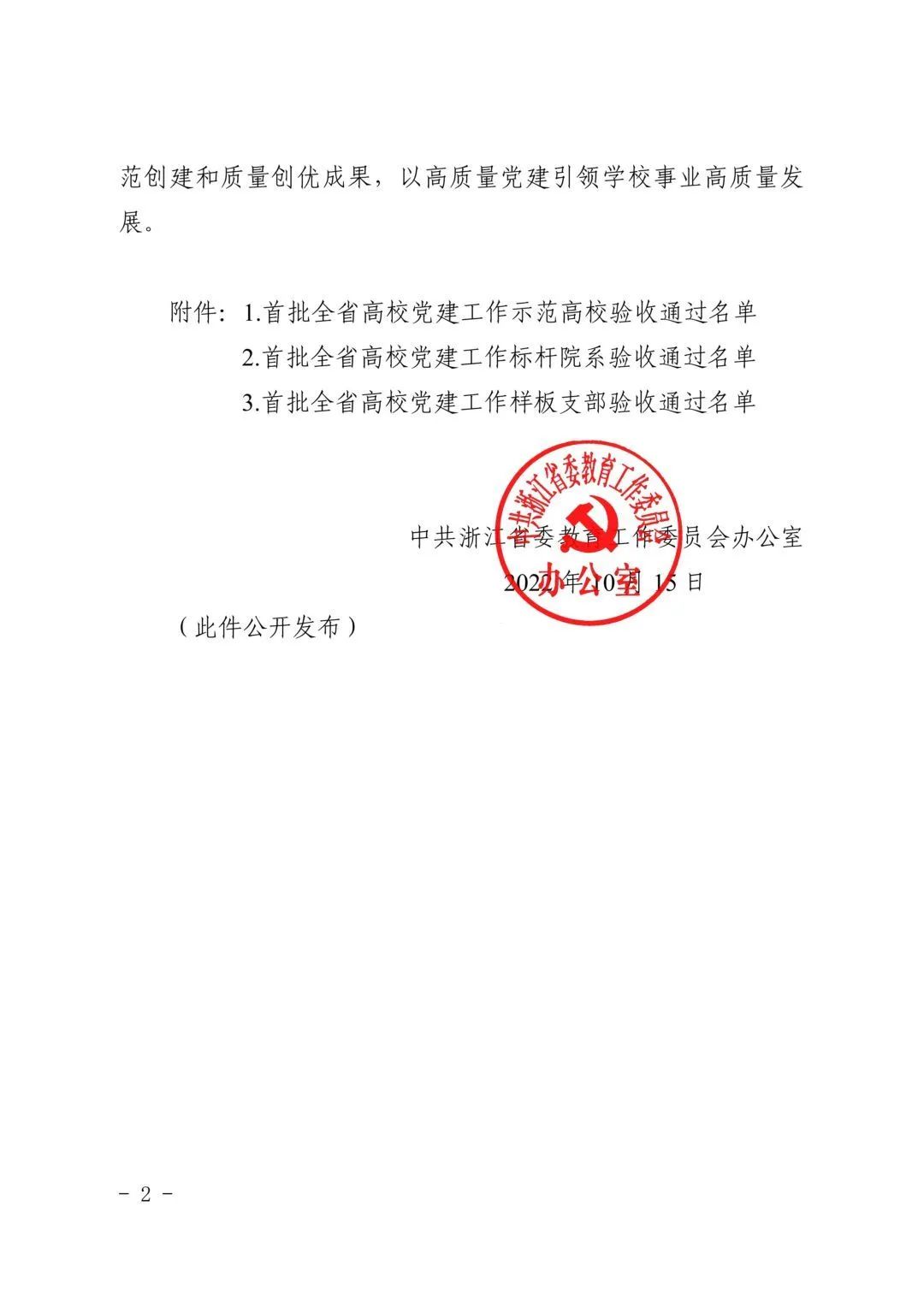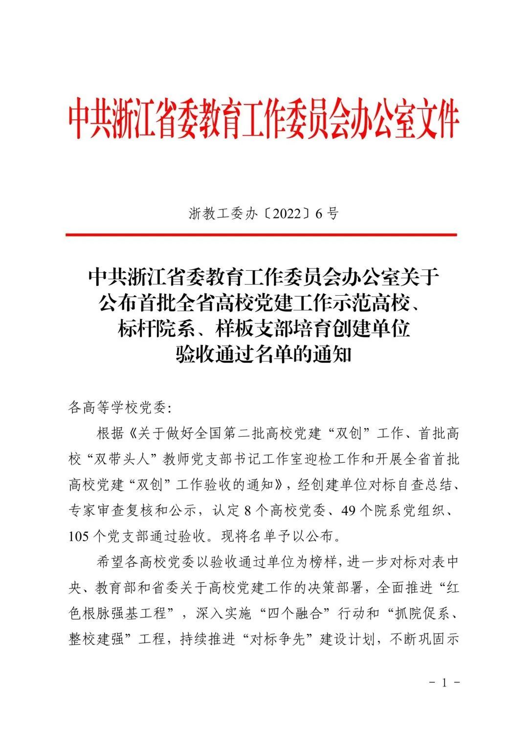 近日,省委教育工委印发《关于公布首批全省高校党建工作示范高校、标杆院系、样板支部培育创建单位验收通过名单的通知》(浙教工委办〔2022〕6 号),财神捕鱼 党委通过首批全省高校党建工作标杆院系培育创建验收。