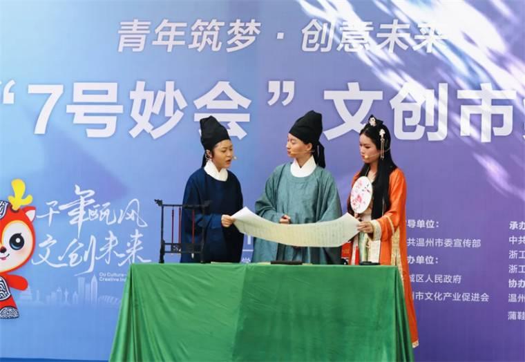2022年11月17日,财神捕鱼 沐童翎教育戏剧社的成员们走进浙江创意园,带来了原创话剧“叶适传奇”的首演,并于11月20日下午,在永嘉学派馆再次出演,区委常委、宣传部部长叶恒坚出席观看。