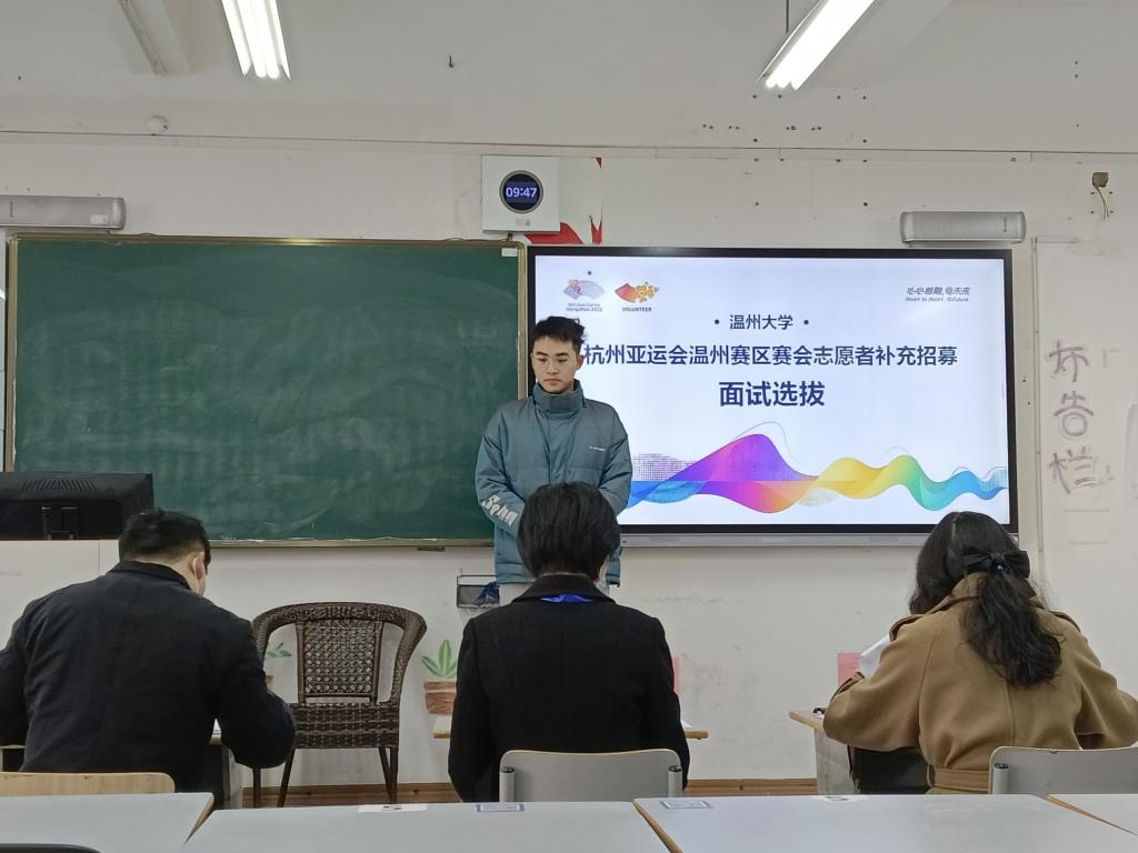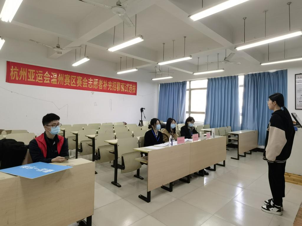 “为什么想成为杭州亚运会(温州赛区)的志愿者?”“在做志愿服务的过程中,你期待能够实现什么目标或者获得什么?”……近日,杭州亚运会志愿者补充招募面试选拔正在如火如荼地举行。财神捕鱼 的同学们踊跃报名,都想为亚运贡献一份自己的力量。一间间面试教室内,同学们拿出了“十八般武艺”,展示自己的专业技能,分享与志愿服务有关的故事。