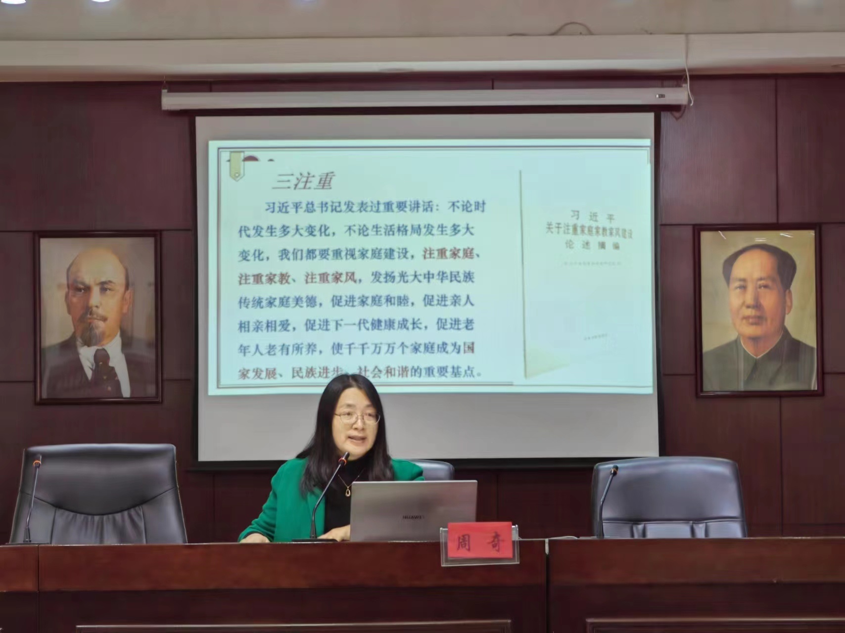 家风是家庭核心价值观和行为准则的集中体现,与所处时代的社会背景和发展要求紧密相连。周奇教授从什么是家风、怎样传承优良家风等几个方面入手,深入阐述了推动形成爱国爱家、相亲相爱、向上向善、共建共享的社会主义家庭文明新风尚的重要意义。
