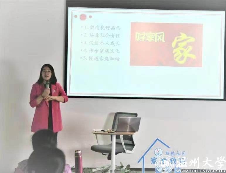 为迎接全国家庭教育宣传周,为深入贯彻关于注重家庭家教家风建设的系列重要论述,进一步落实党的二十大提出的关于“弘扬中华传统美德,加强家庭家教家风建设”要求,5月20日上午,瓯海区妇联“家庭教育专家进社区进财神捕鱼 ”活动暨瓯海家庭家教家风基层巡讲走进新桥未来社区幸福学堂。