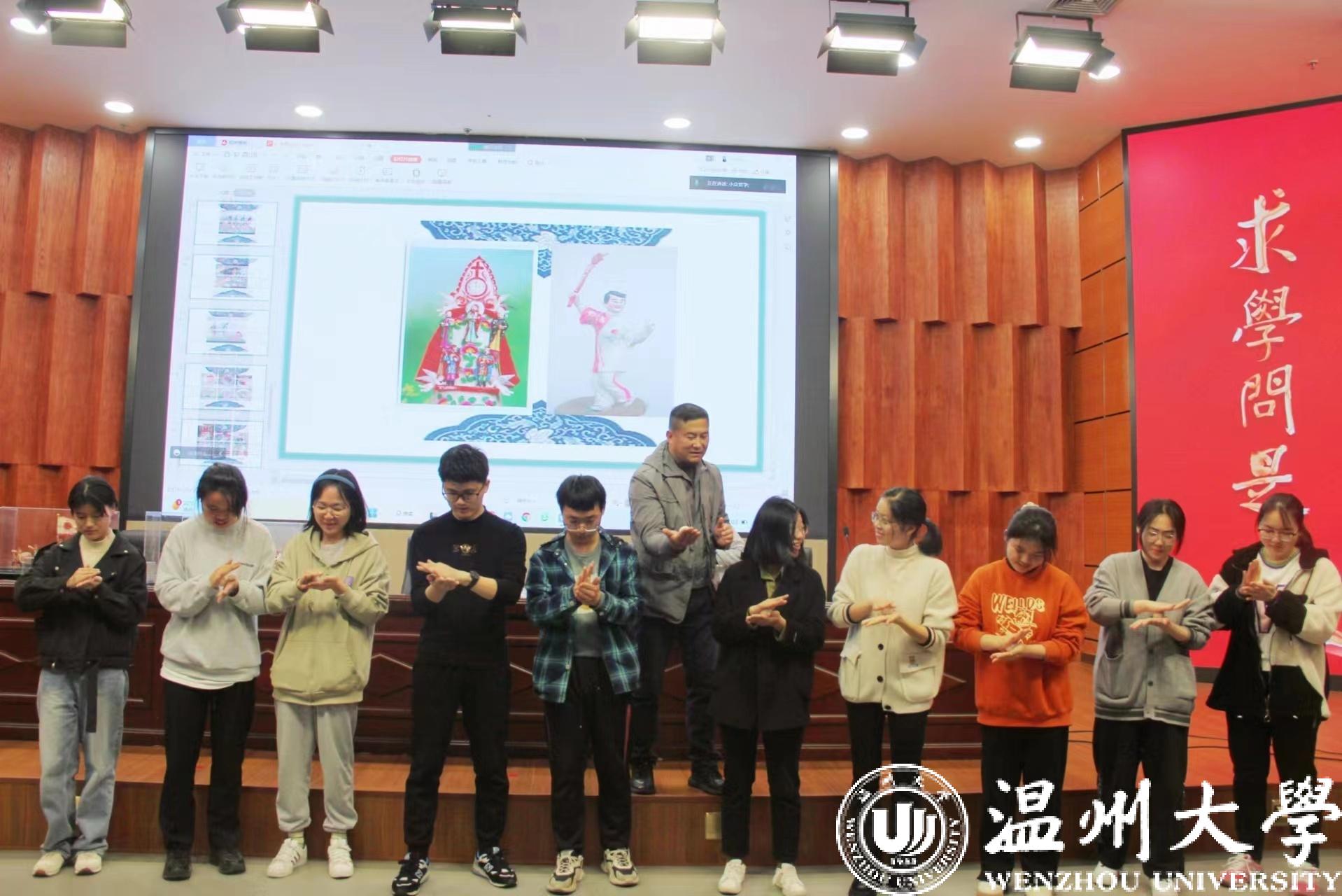 “传统米塑展现了历代人们对美好生活的祝愿与文化审美的追求。米塑在温州人生活中‘随处可见’,比如老人做寿所需的米塑大寿桃、过年招财用的米塑元宝等等。”陈贻春以米塑文化的来源和历史内涵引入,为同学们详细讲解了自己的米塑作品。随后,陈贻春更是邀请了十名同学上台,近距离学习米塑的制作工艺。同学们在老师的手把手指导下捏出了一只只活灵活现的“小兔子”,感受指尖上的非遗艺术传承。