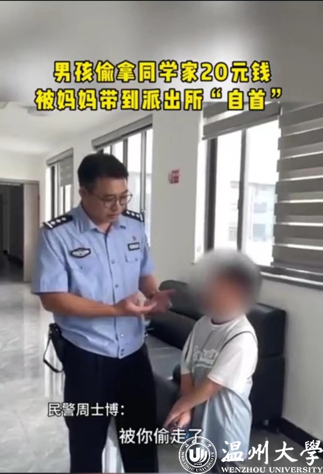 原来,吴女士的儿子之前偷拿过几次家里的钱,吴女士每次发现后都对他进行严厉批评,然而收效甚微。7月3日,她的儿子在同学家偷拿了20元钱,她得知后便带着儿子向民警求助。