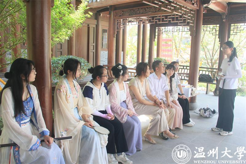 初入街区,古色古香的韵味扑面而来。建筑色彩以沉稳厚重为主基调,局部用木构架加以点缀,“白墙青瓦马头墙”在这里被很好地展现出来,一些老屋上还布满了爬山虎,显现着独特的生机与魅力。错落有致的房屋、美丽古老的砖墙让这条老街蒙上了历史厚重的气息。同学们在梧桐老街入口处进行了集体合影。且往里走,河埠头、长廊、小巷等等都十分适合拍摄,穿汉服的姑娘们在巷口、桥边、水畔,谈笑、戏水、吹笛。蝉鸣阵阵,蜻蜓飞舞,就是那样的情态,仿佛上演了千年。