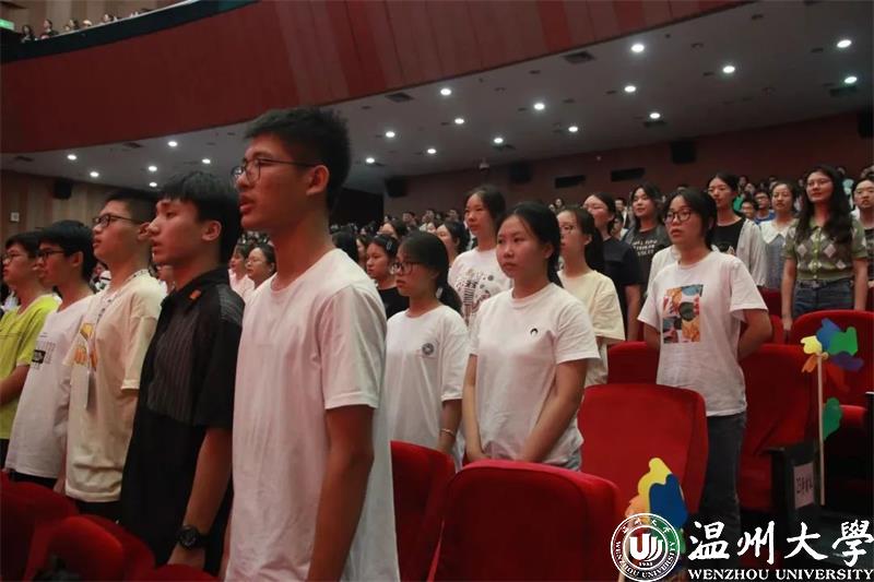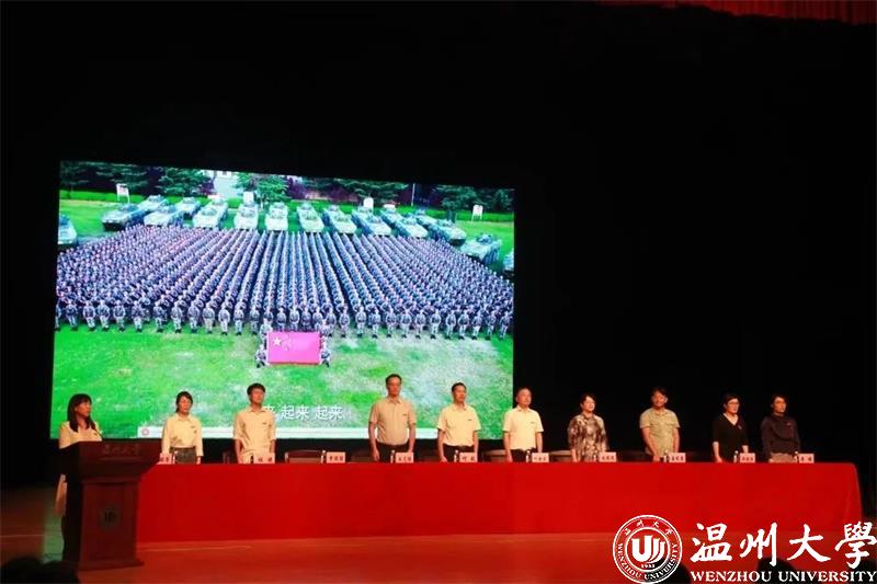 全体师生齐唱温大校歌。相信“求学问是、敢为人先”校训精神将成为同学们的大学生活的主旋律,同学们定能用笔书写人生的答卷,在新时代的火热实践中放飞青春梦想。