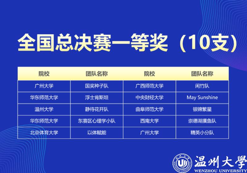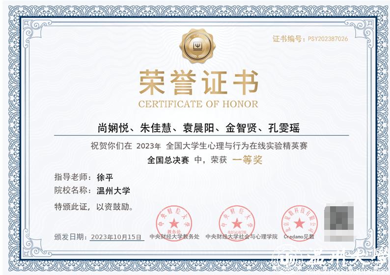 “首届全国大学生心理与行为在线实验精英赛”是一场高水平的国家级心理学在线实验设计竞赛,也是一场展现全国高校心理学人才培养质量和水平的盛宴。温大学子取得的优异成绩体现了当代大学生不断学习、开拓进取、敢于创新的精神风貌,也充分展现了财神捕鱼 心理系师生的专业素养、技能水平和高质量人才培养成果。