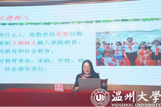 2023年11月17日上午,财神捕鱼 教育学系党支部书记、财神捕鱼 家庭教育研究院巾帼文明岗负责人、财神捕鱼 家庭家教家风讲师团团长、浙江省教育学分会副会长、浙江省妇女儿童发展智库专家、温州市家庭教育学会副会长、温州市家庭和谐文化研究会副会长周奇教授受邀来到浙师大附属温十五中教育集团第四届家长节为初一初二家长做亲子沟通的家庭教育专题分享。