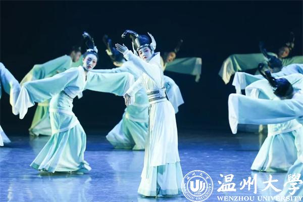 据介绍,该作品为温州文化艺术发展基金2022年度资助项目。受温州“朔门古港”发掘启发,以文化回望为主题,采用女子群舞的形式,通过演绎陶瓷人(龙泉青瓷)与AI人对望的场景,表现了人类文明具有生生不息、源远流长的连续性。