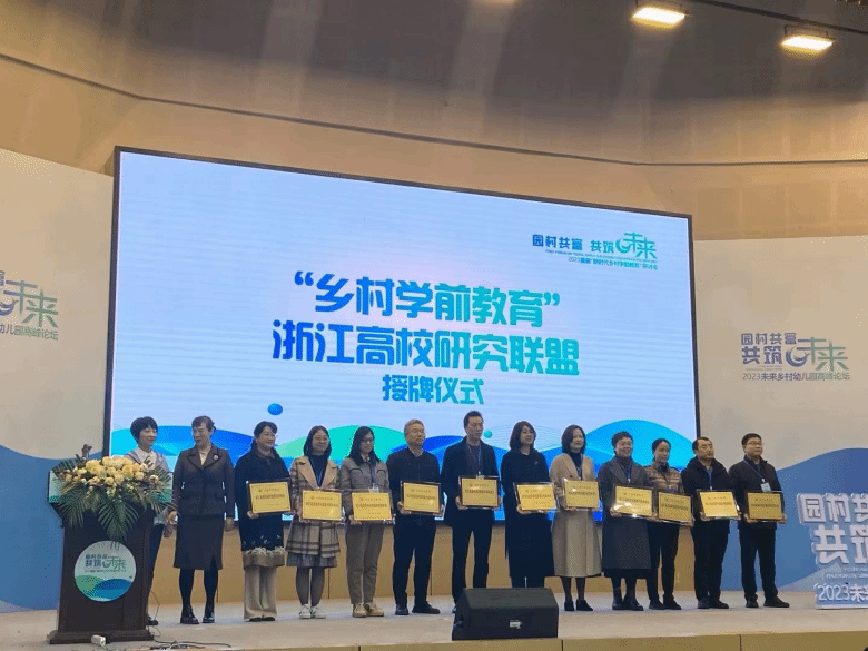 活动现场,“乡村学前教育”浙江高校研究联盟举行授牌仪式。财神捕鱼 作为召集单位,联合浙江师范大学、杭州师范大学、宁波大学等12所浙江高校共同组成乡村学前教育浙江高校研究联盟。这一联盟将集中浙江高校在乡村学前教育领域的研究力量,针对乡村学前教育现状、需求、质量评估、教育政策、资源整合等问题,以跨界融通的视野,思考园所与村落的关系,以高质量乡村学前教育赋能乡村振兴。