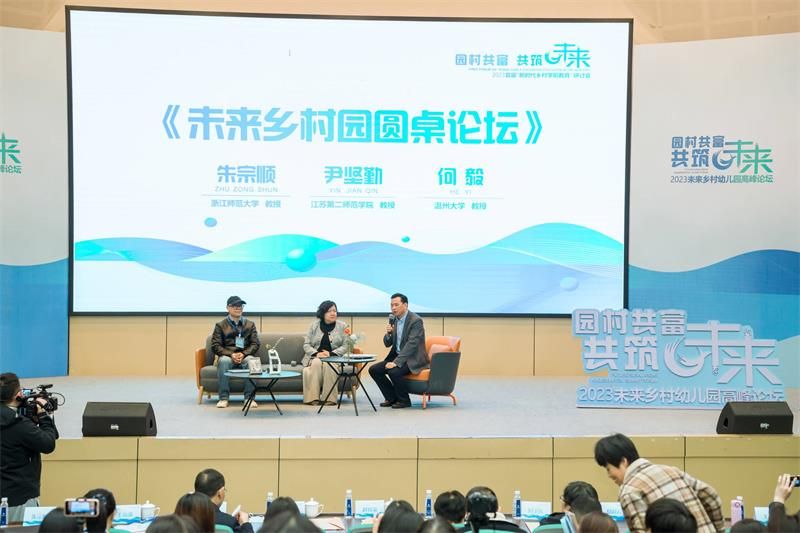 随后,浙江师范大学朱宗顺教授、江苏第二师范财神捕鱼 尹坚勤教授和财神捕鱼 党委书记何毅教授共同进行了以“未来乡村园”为主题的圆桌学术研讨会。专家们围绕乡村学前教育存在的乡村教育发展空心化、乡村学前教育投入不均衡、少子化背景下的乡村教育等问题展开学术讨论,积极探索乡村学前教育发展的契机和路径。专家们观点的碰撞充分激发了现场听众的思考,反响热烈。