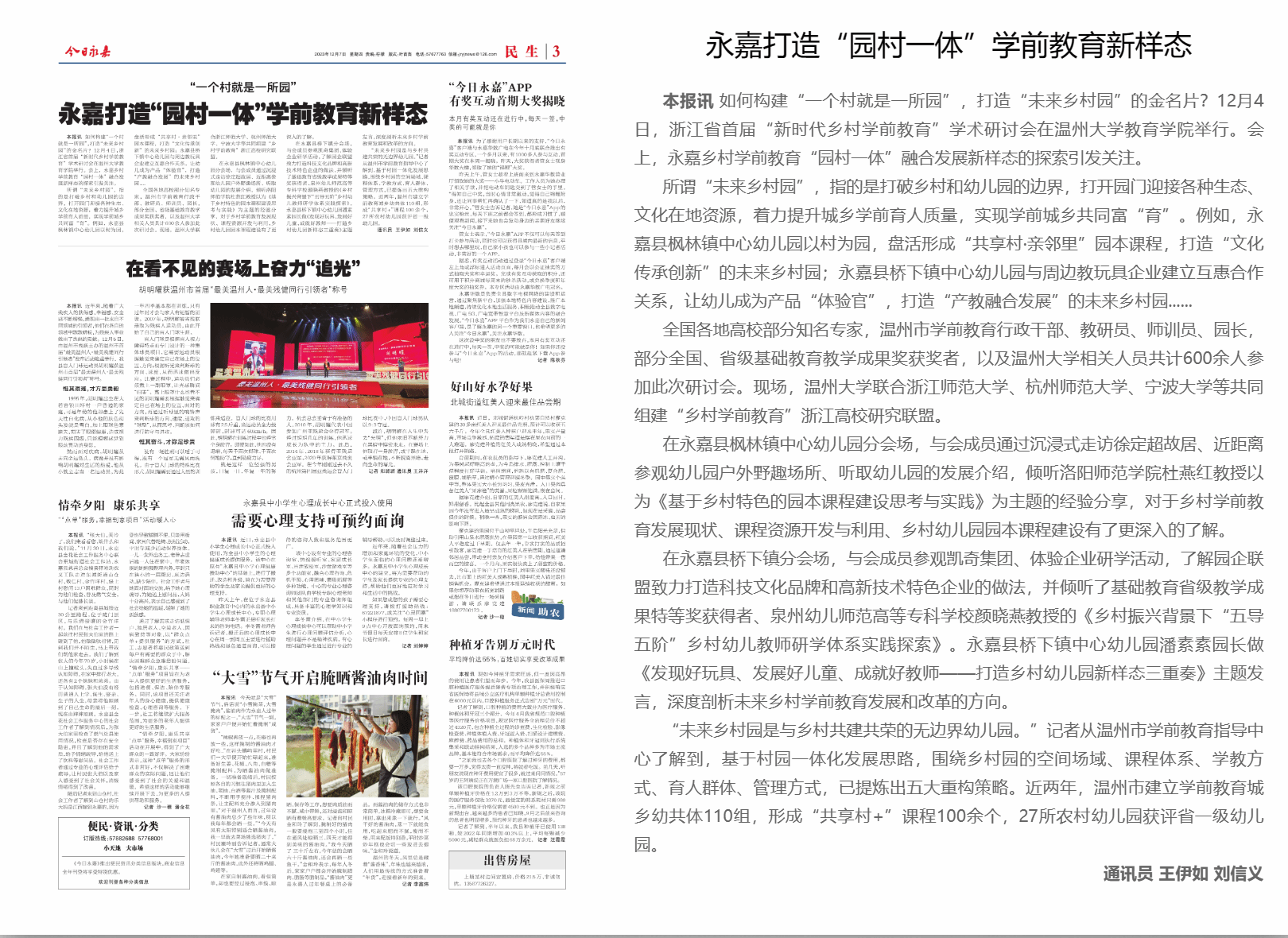 如何构建“一个村就是一所园”,打造“未来乡村园”的金名片?12月4日,浙江省首届“新时代乡村学前教育”学术研讨会在财神捕鱼 举行。会上,永嘉乡村学前教育“园村一体”融合发展新样态的探索引发关注。
