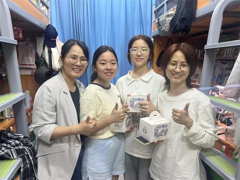 据悉,该院每位同学将收到一盒粽子,每盒包含甜咸口味粽子各一个。值得一提的是,考虑到同学们南北饮食差异,今年的粽子是“咸粽党”和“甜粽党”的共同胜利,其中既有鲜肉鲜粽和豆沙蜜枣鲜粽的搭配,也有黄米酸奶粽和高汤鸡肉粽的搭配。同学们随机抽取“盲盒”,打开精致的包装,剥开一层、两层粽叶,粽香四溢,温暖的不仅是学子们的味蕾,更触动了他们的心弦。