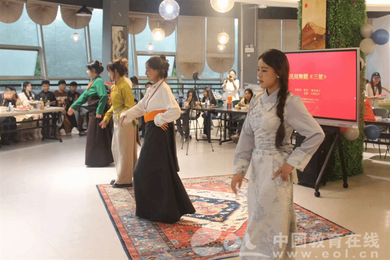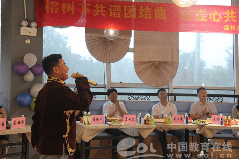 夜幕降临,晚上的“榕·宴团圆”庆祝活动更是精彩纷呈。在热闹的长桌宴上,维吾尔族、藏族、蒙古族、回族、畲族等50余名少数民族学生与领导嘉宾、老师们围坐一圈,他们身着鲜艳的少数民族服饰,分享各民族特色美食、一起畅谈家乡民族风俗。来自不同民族的学生代表身着节日盛装,纷纷走上舞台,用优美动人的民族特色舞蹈和悠扬婉转的歌声,向在场师生们展示了多元文化的魅力,现场气氛热烈而温馨。来自藏族的桑宗同学感慨道,“今天的活动让我感受到了家一般的温暖,作为新时代青年,让我们像石榴籽一样紧紧相依、紧密相连,共同绽放出属于我们的色彩!”