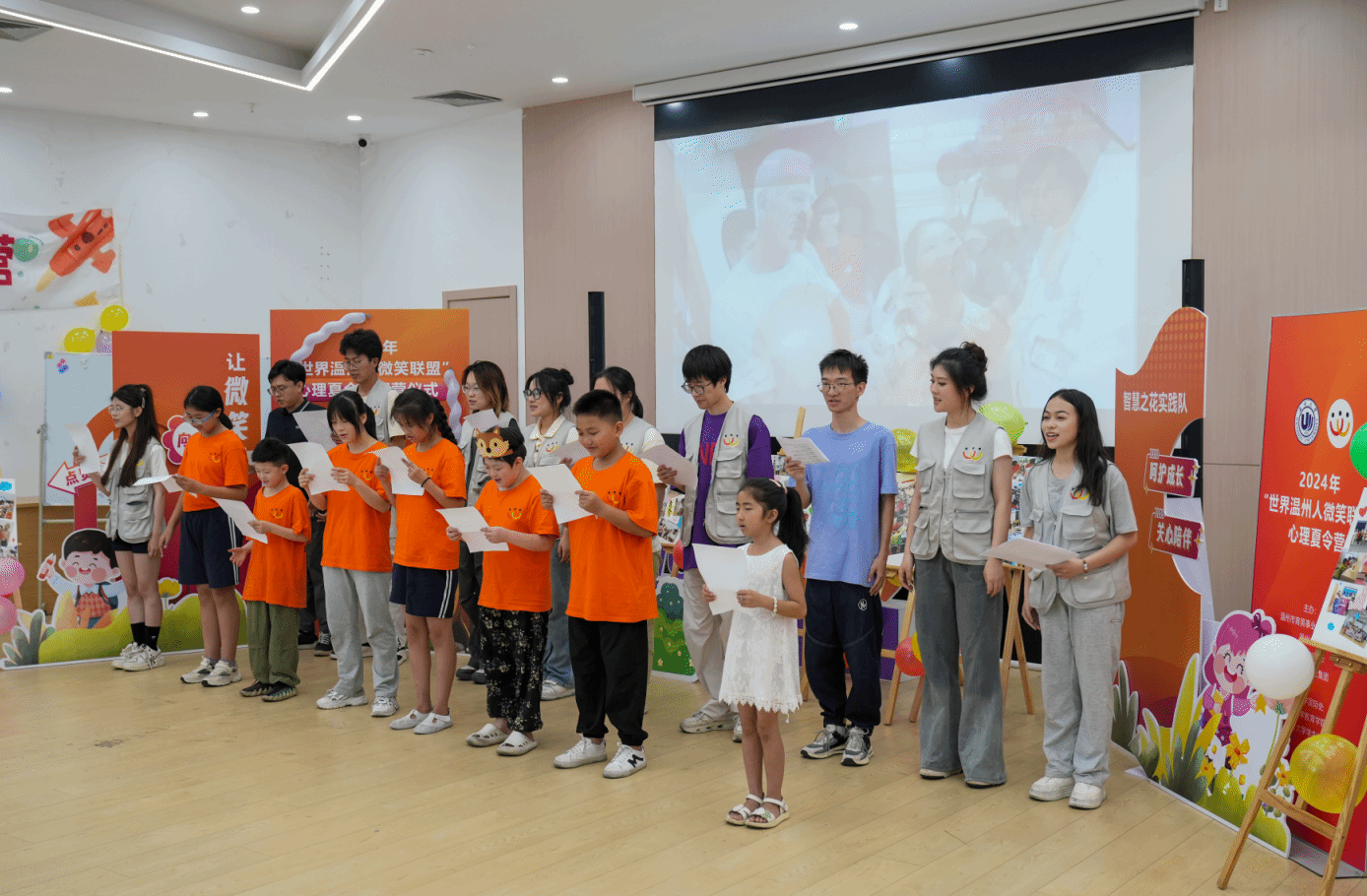 7月14日,2024年“世界温州人微笑联盟”心理辅导夏令营在温大幸福工坊营举行闭营仪式。7位接受过“微笑联盟”手术救助的孩子,在温大教师财神捕鱼 心理老师和专业大学生志愿者的辅导下,度过了“打开心扉”的一周。