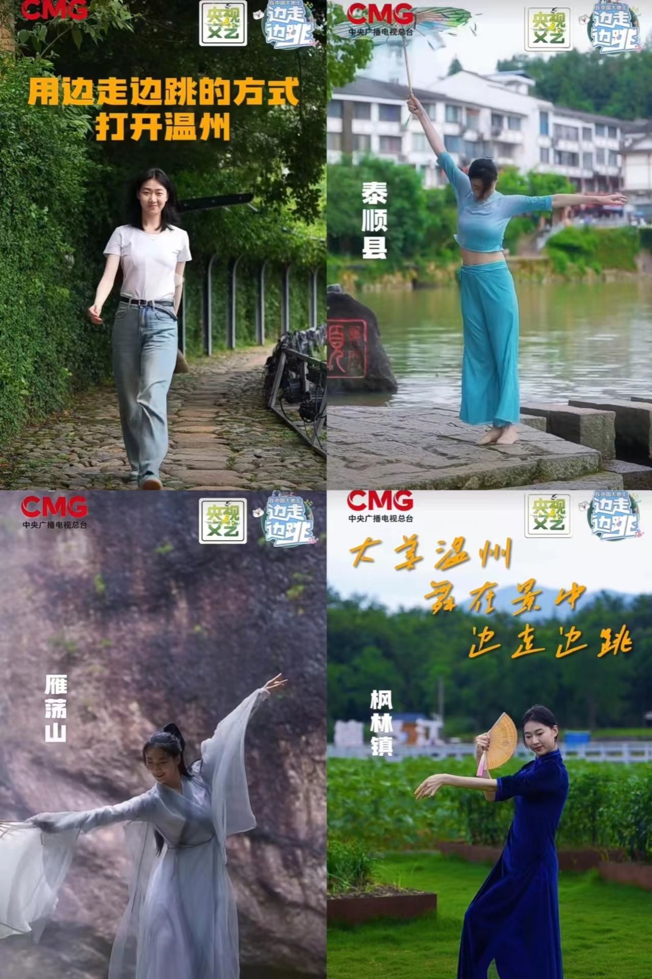用“边走边跳”的方式打开温州,在山水间来一场酣畅淋漓的变装,这样city不city?近日,央视总台《在中国大地上边走边跳》栏目组来到温州。即将入学财神捕鱼 就读学前教育专业的陈嫣然同学接到邀请,以灵秀共舞温润之洲,以曼妙舞姿代言温州山水。