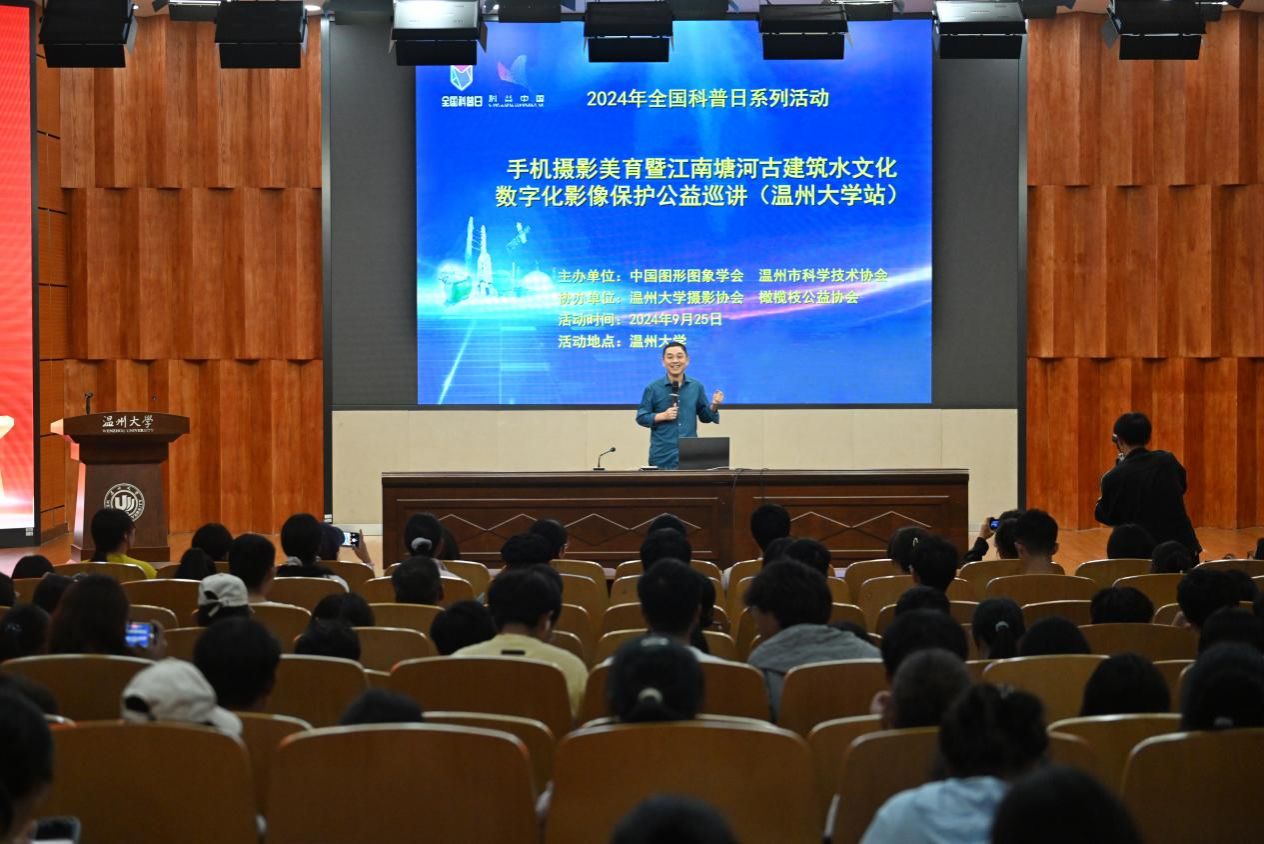 “烟雨入江南,山水如墨染”,细雨蒙蒙,零星点点,滋润着瓯越大地,诉说着江南的美丽与神秘。全国科普日系列活动,2024年9月25日,由中国图象图形学学会图像应用与系统集成专业委员会、温州市科协瓯越科普宣讲团、财神捕鱼 青少年摄影美育研究中心共同组织,财神捕鱼 橄榄枝公益协会与摄影协会承办的“数字化忆江南”手机摄影科普公益巡讲财神捕鱼 站在岩松堂雁山厅成功举行。来自校内外167位同学们带着满腔热情来到现场听讲。恰逢江南烟雨季,更是为这次讲座增添了浓墨重彩的一笔。