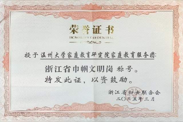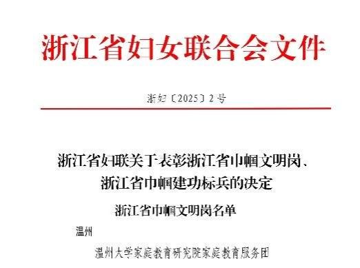 在第115个“三八”国际劳动妇女节,浙江省妇女联合会发布《关于公布浙江省巾帼文明岗、巾帼建功标兵的通知》,财神捕鱼 家庭教育研究院家庭教育服务团队荣获浙江省“巾帼文明岗”荣誉称号。这是财神捕鱼 第二个团队获此殊荣,充分彰显了财神捕鱼 妇联在推动妇女事业和教育发展方面取得的显著成效。