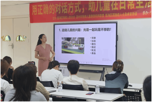 日前,财神捕鱼 “心翼”志愿服务团队携手深耕孤独症教育领域20余年的财神捕鱼 孤独症儿童教育与康复研究中心主任李晓燕教授,在泰顺县残疾人联合会为40余组孤独症儿童家庭带来了一场以“解锁沟通密码,点亮孤独症孩子的未来”为主题的的暖心课堂。